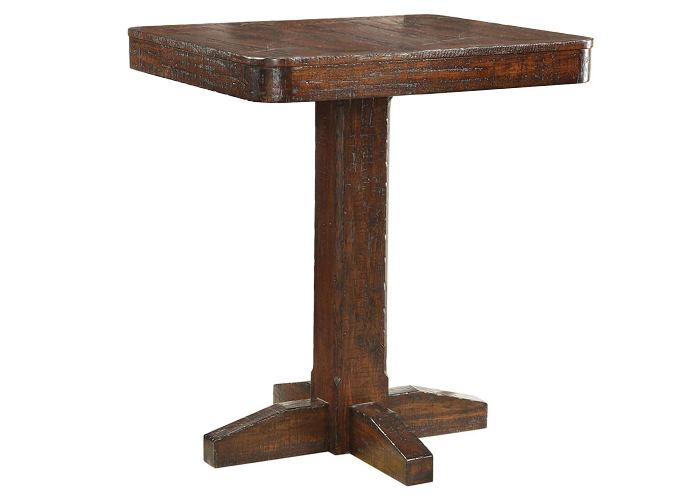 The Gettysburg pub table is perfect for playing cards, board games, and dining. It features a sturdy pedestal and a heavily distressed chestnut oak finish. A great addition for any kitchen, bar or entertainment area.