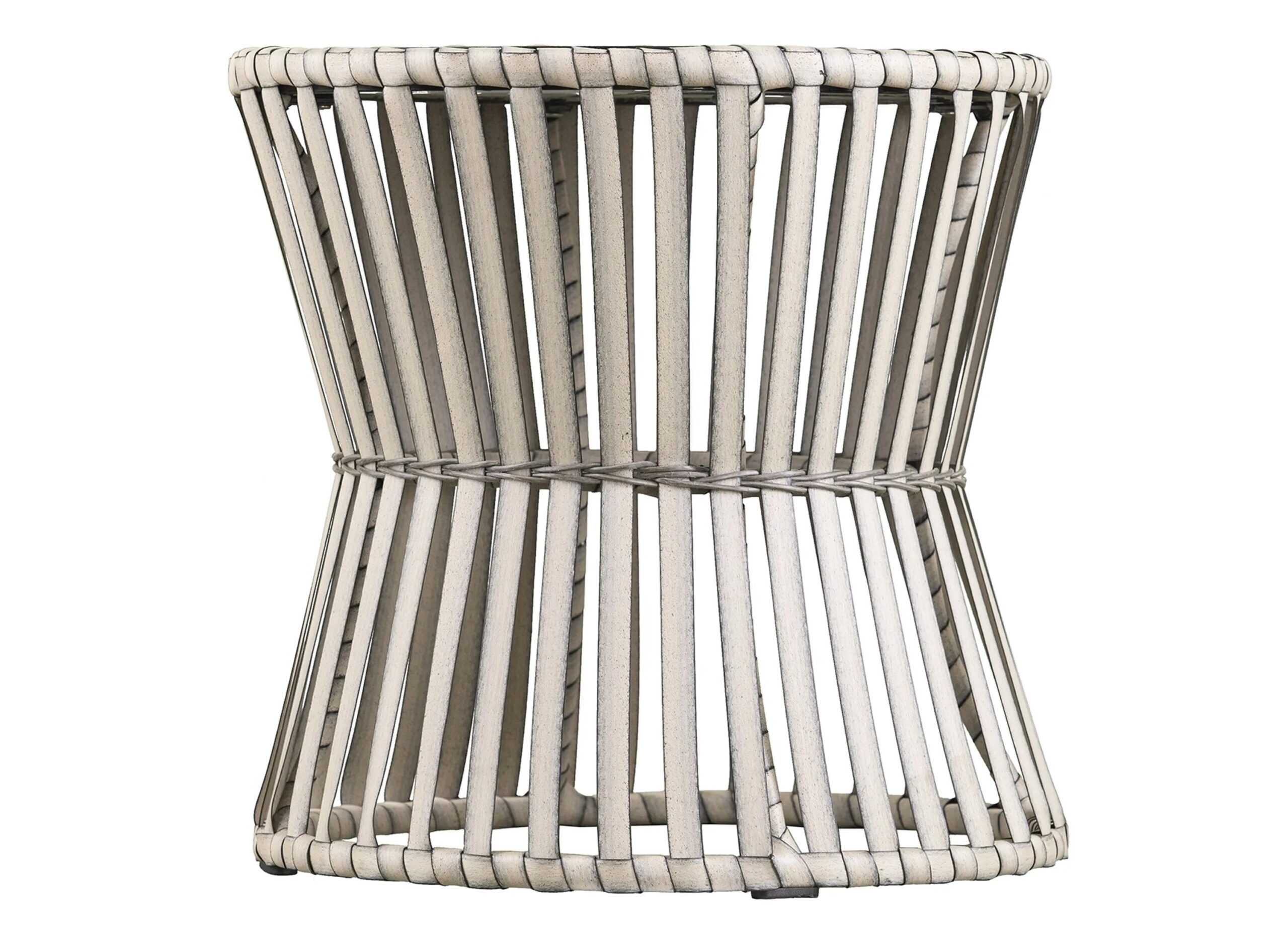Weave a contemporary design with the Gibson round side table . A sturdy, all-weather frame rounds out your patio setup, while wicker straps string together a textured, natural look. A scattered ceramic petal pattern decorates the spacious tabletop, crafting a unique mosaic design and updating you