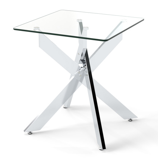 Glass Side Table Square End Table with Tempered Glass Top