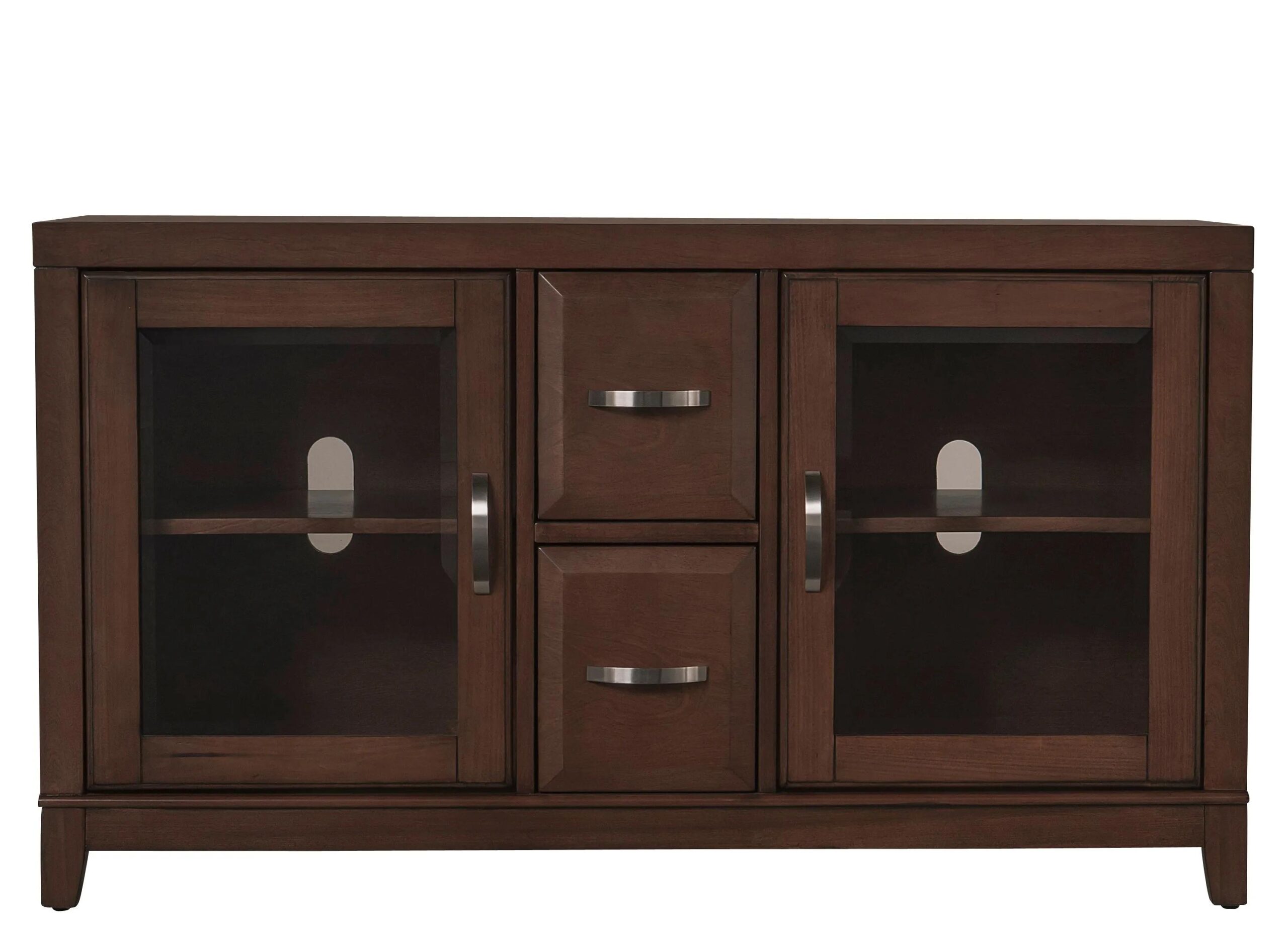 Divide and conquer with the Granthom 48″ TV console, crafted of solid poplar with birch veneers. Wood-framed glass doors keep your media equipment visible yet protected, and cable cutouts allow you to snake cords through and ventilate your components.