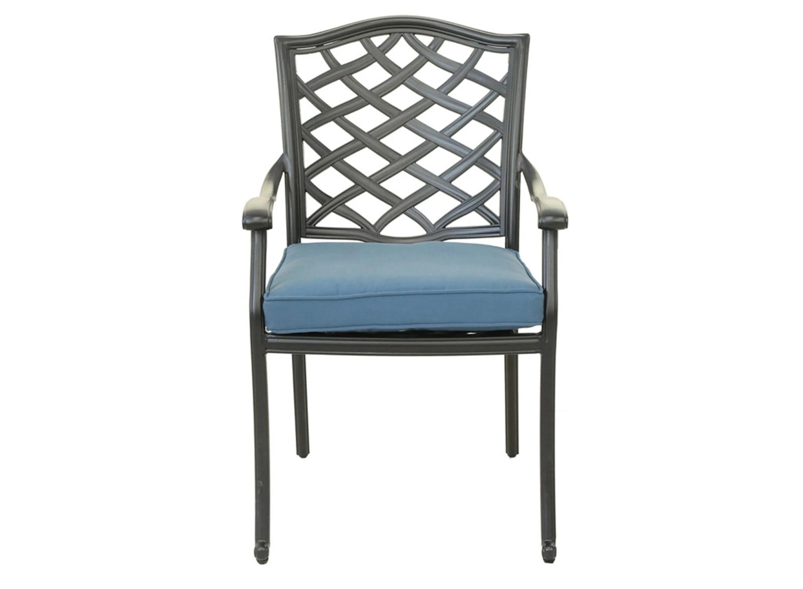 Elegantly crafted, the Halston outdoor arm chair -set of 2 chairs feature a truly unique palette. Frames are made of cast aluminum and are finished that are powder coating. The finishes compliment a curvy structure that is reminiscent of Spanish design.