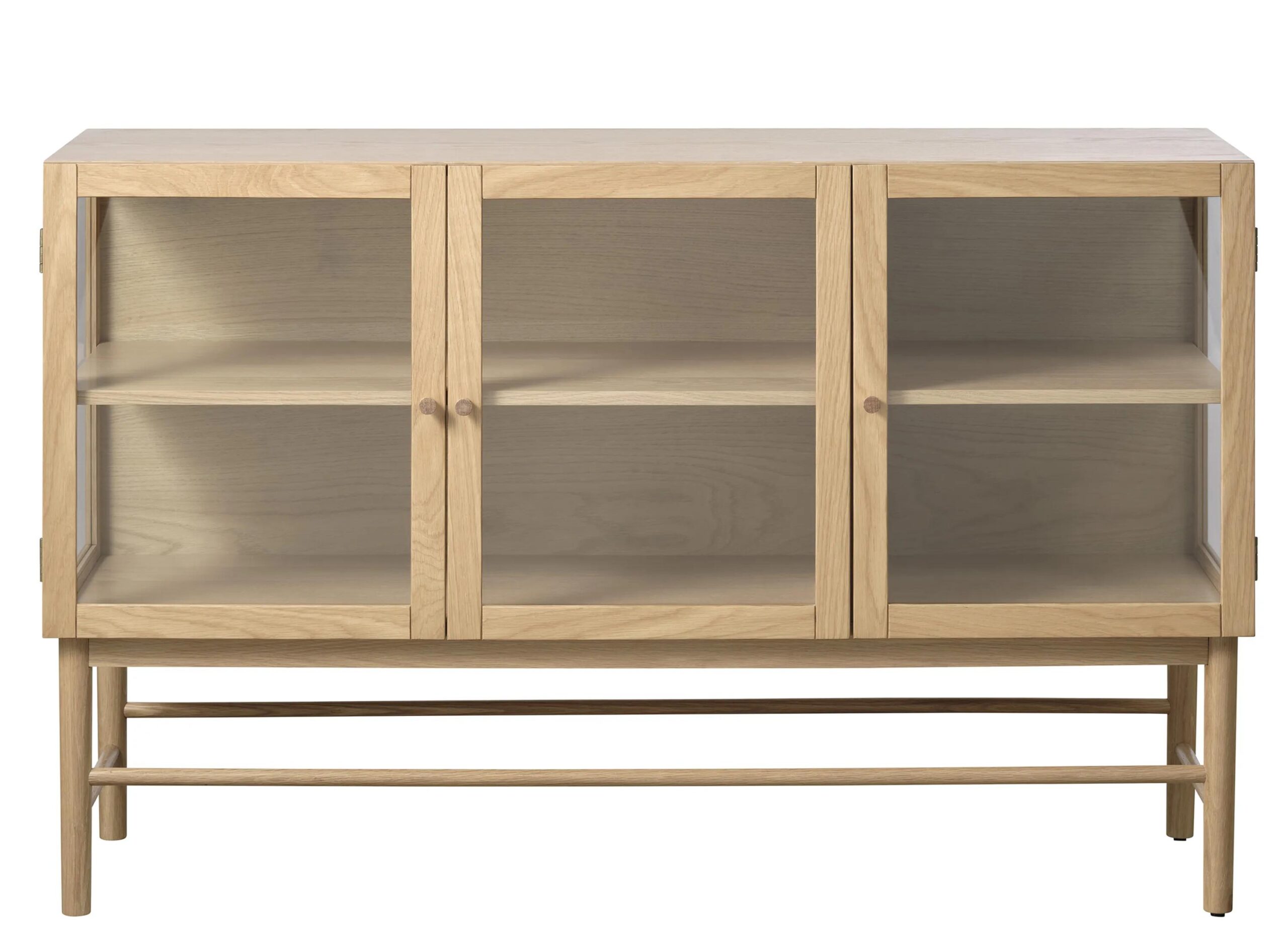 Discover the allure of Danish design with the Hamilton 3 Door Sideboard. Crafted from natural oak wood, this exquisite piece combines sleek lines with exceptional craftsmanship. Its minimalist aesthetic and transparent glass panels effortlessly blend traditional charm with contemporary sophistica