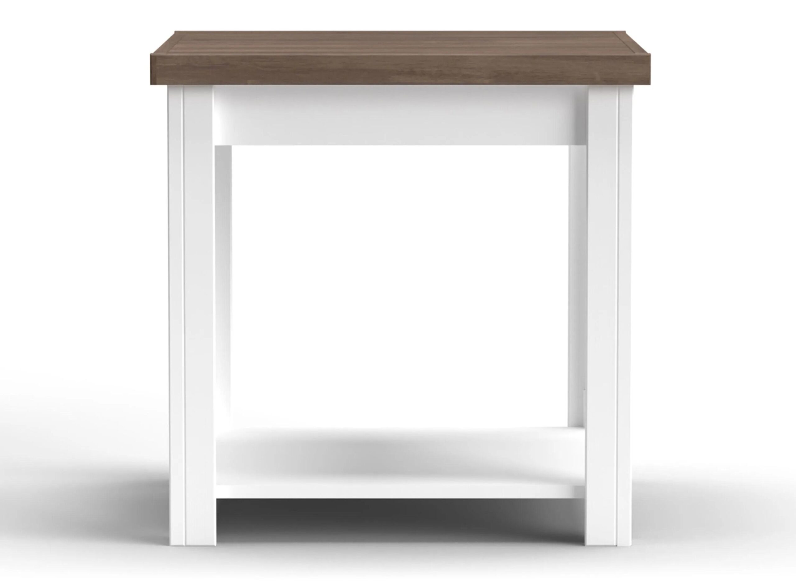 The Hampton end table offers the easy going styling of cottage blended with country to create this unique looking two toned piece. The combination of the bright Jasmine White exterior and Barnwood top makes Hampton a stylish addtion to any room in your house.