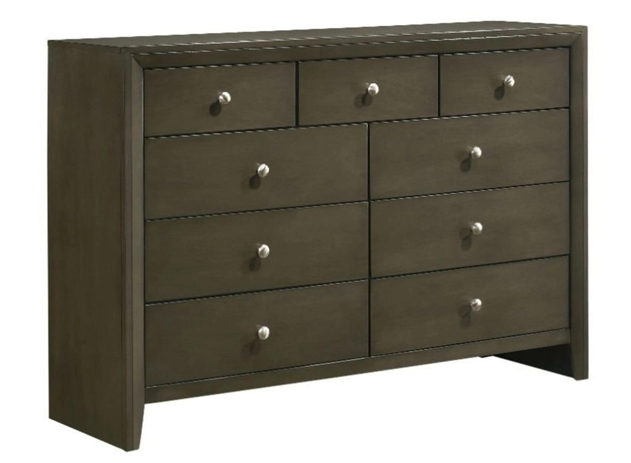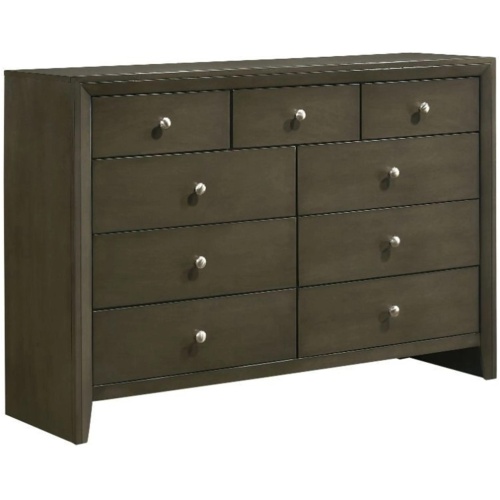 This Harpelstane 9 Drawer Dresser is a practical and good looking accent for your bedroom storage and organizational needs. Designed for you to stand in front of and get ready, this horizontal triple dresser has a convenient and wide top area for your getting ready needs and supplies.