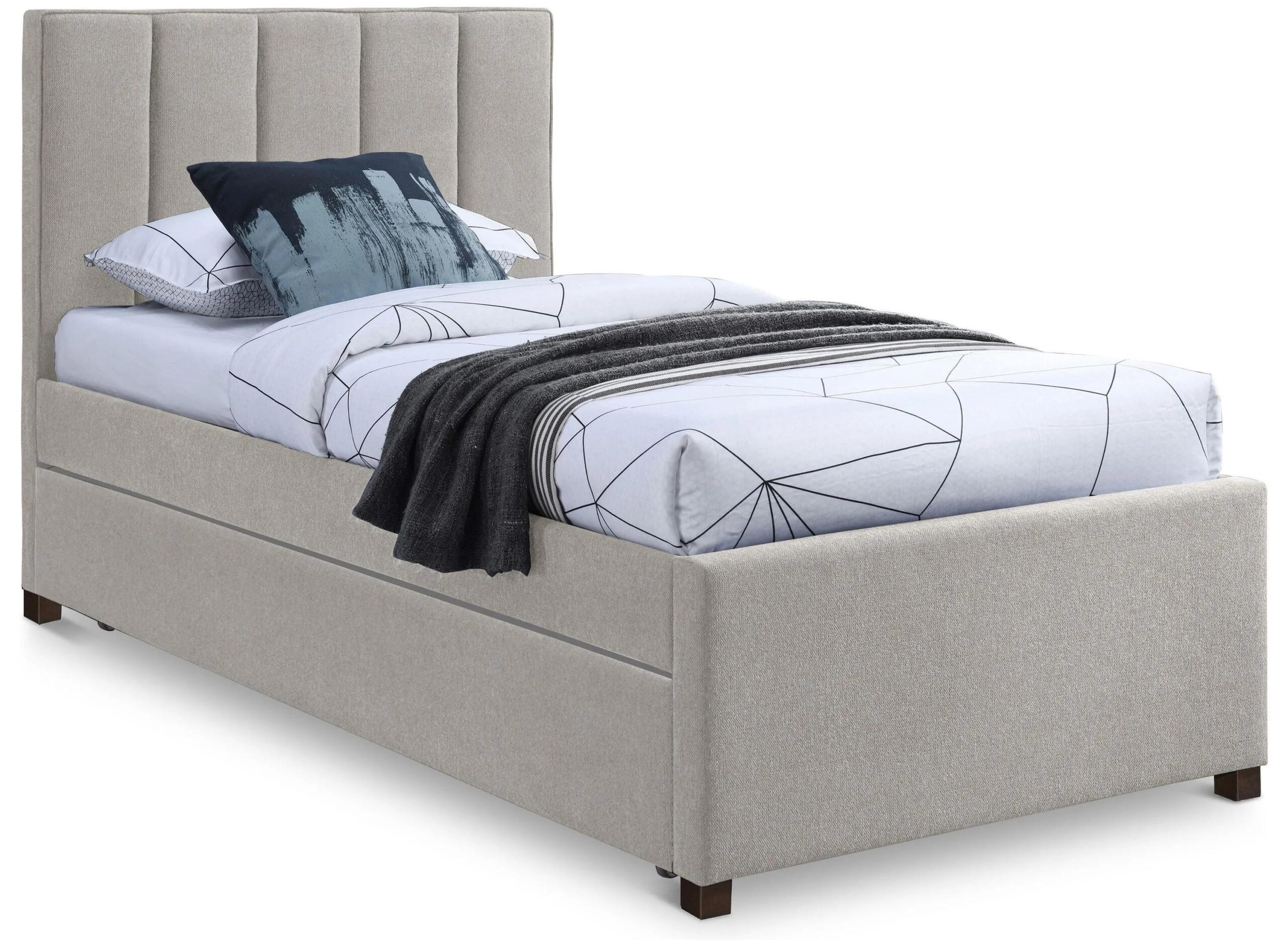 Turn even the smallest bedroom into a veritable sanctuary with this lovely Harper Trundle Bed. A channel tufted headboard and footboard features textured linen fabric for a head-turning and modern look.