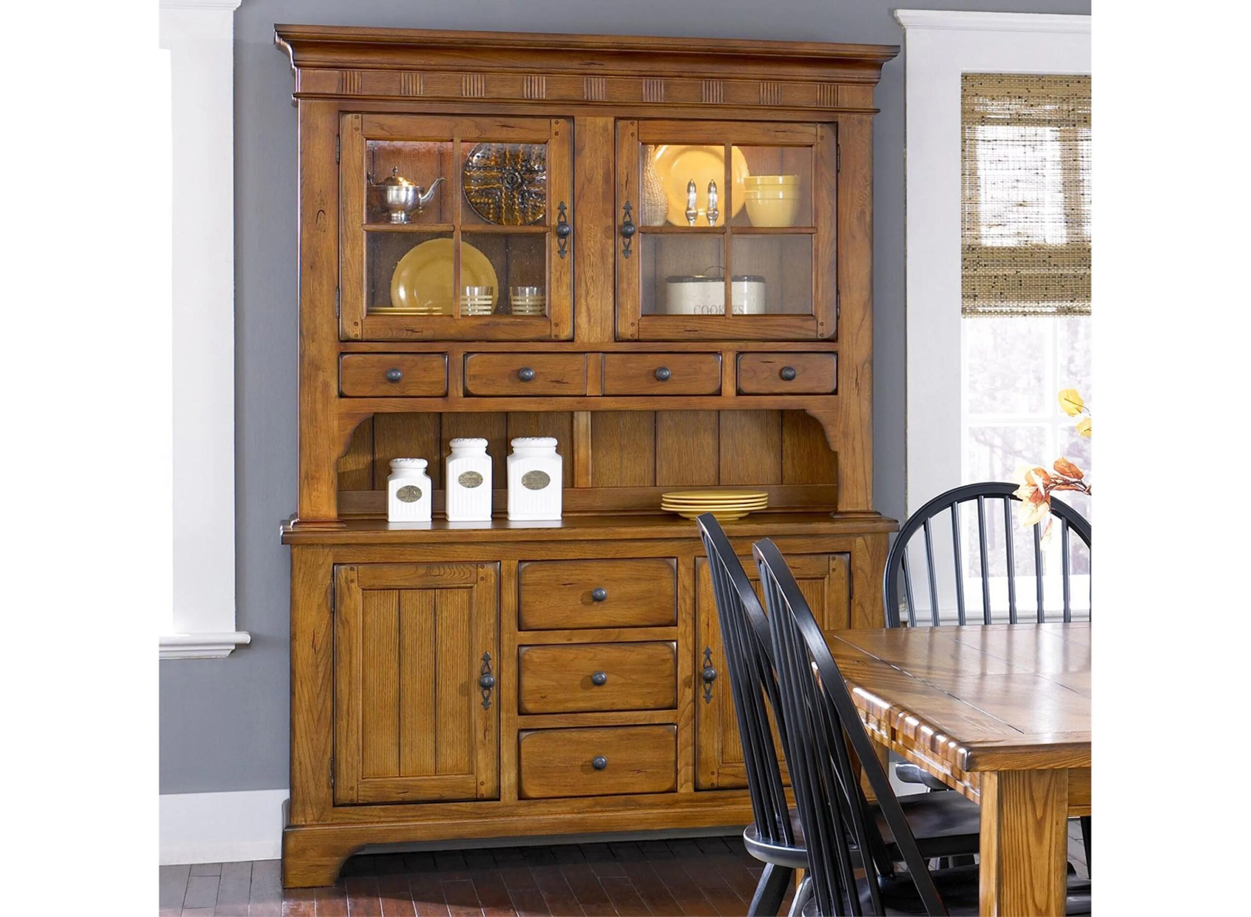Simple shaker styled dining in a subtle chestnut finish. Evokes the feel of a treasured antique from days gone by. The lighted china hutch accented with seeded glass further enhances this timeless shaker design.