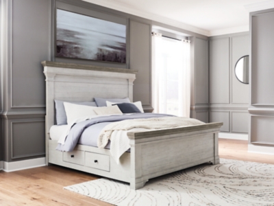 Havalance Queen Panel Storage Bed, White/Gray