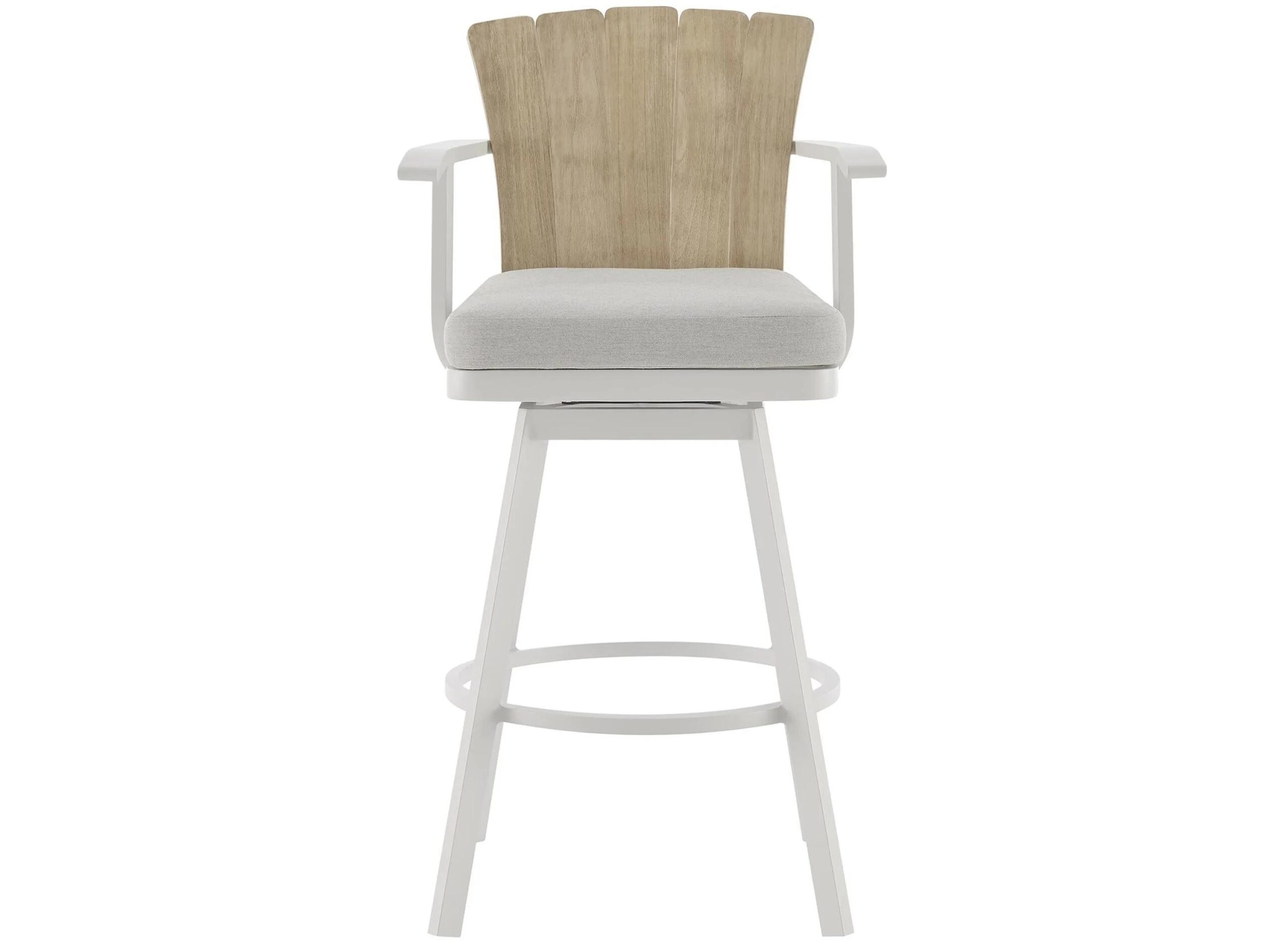 Introducing the Hazel 40″ Outdoor Swivel Counter Stool – an exquisite fusion of contemporary design and natural beauty meticulously crafted to elevate your outdoor entertaining space. This versatile stool seamlessly combines the sleek appeal of aluminum with the timeless elegance of t