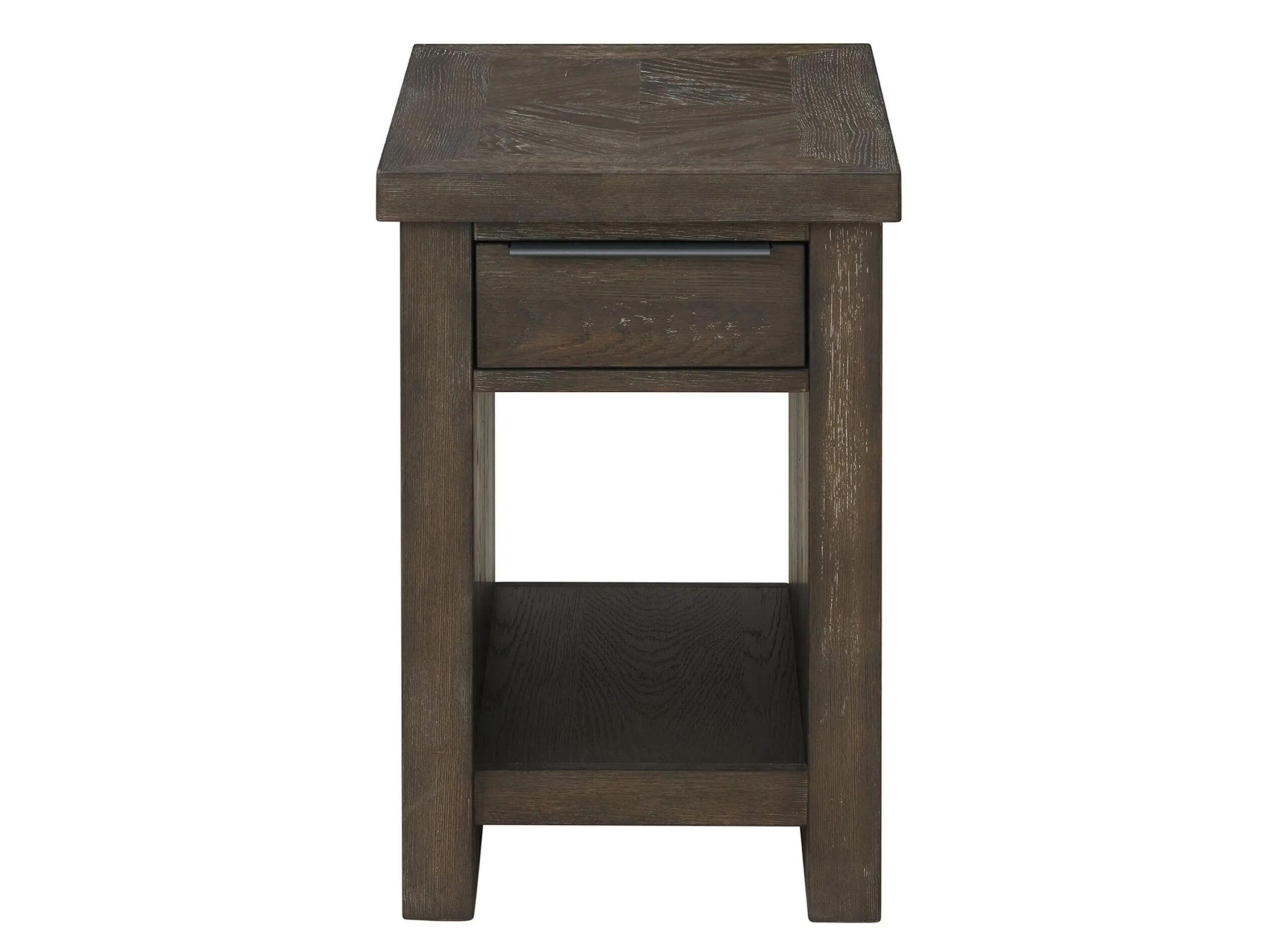 The Hearst Living Room Collection features a wire brushed rustic Oak Veneer laid up in an intricate diamond pattern. Rustic Modern Style with a rich finish. These Tables are solidly constructed with an extra thick tops and heavy duty bases.