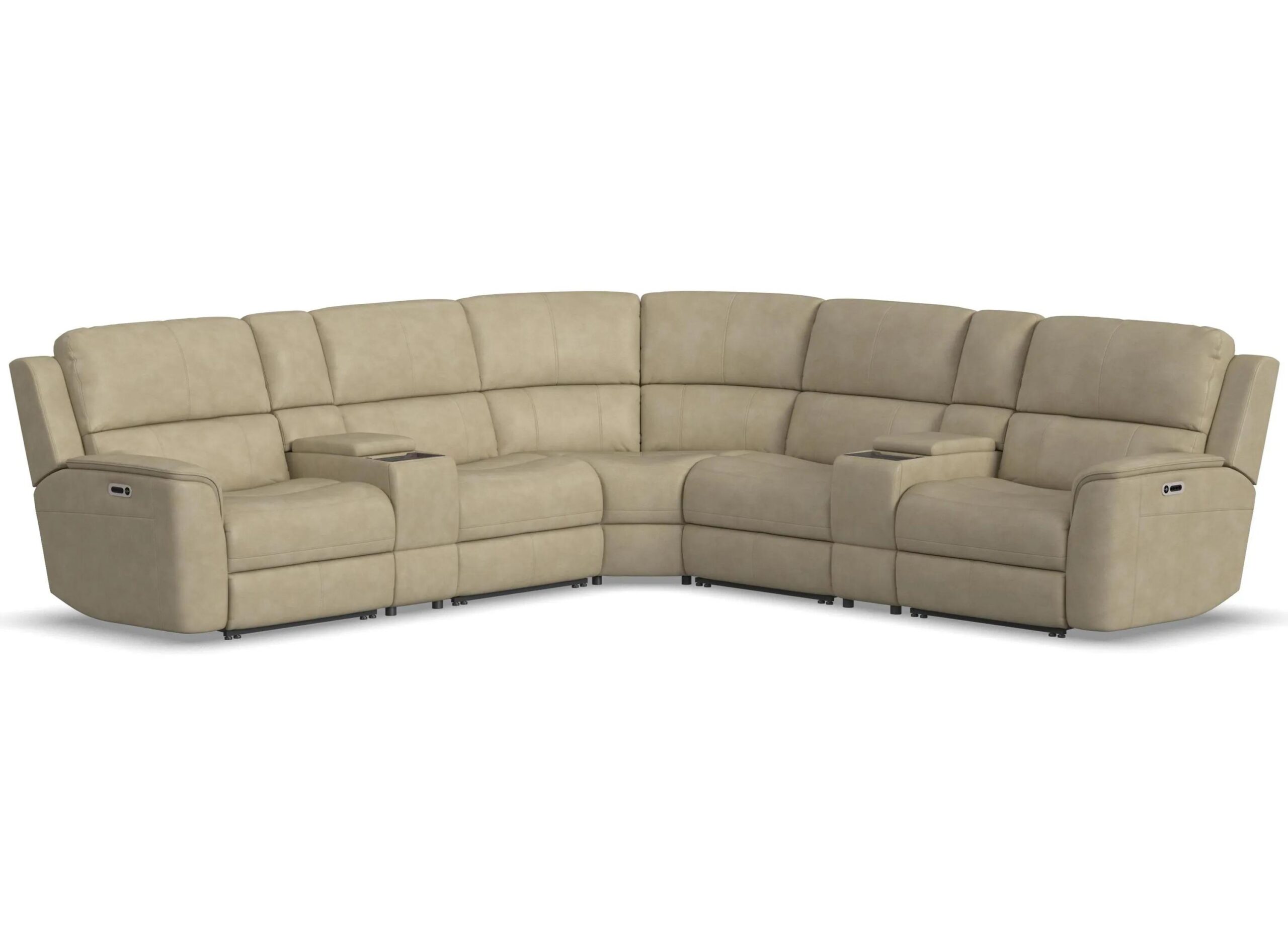 Experience the perfect blend of luxury, comfort, and advanced technology with the Henrick 7-pc. triple power leather sectional. In beautiful hues of premium leather, the Henrick’s smooth finish and well-defined stitching bring sophistication to any living room.