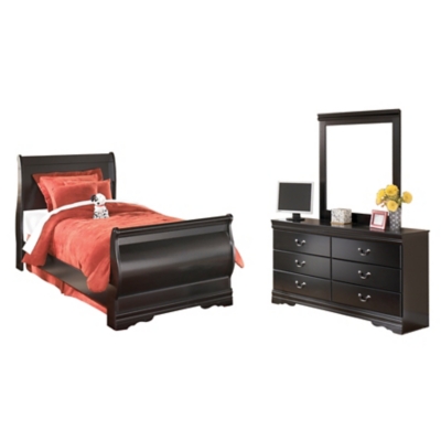 Huey Vineyard Twin Sleigh Bed with Mirrored Dresser and 2
