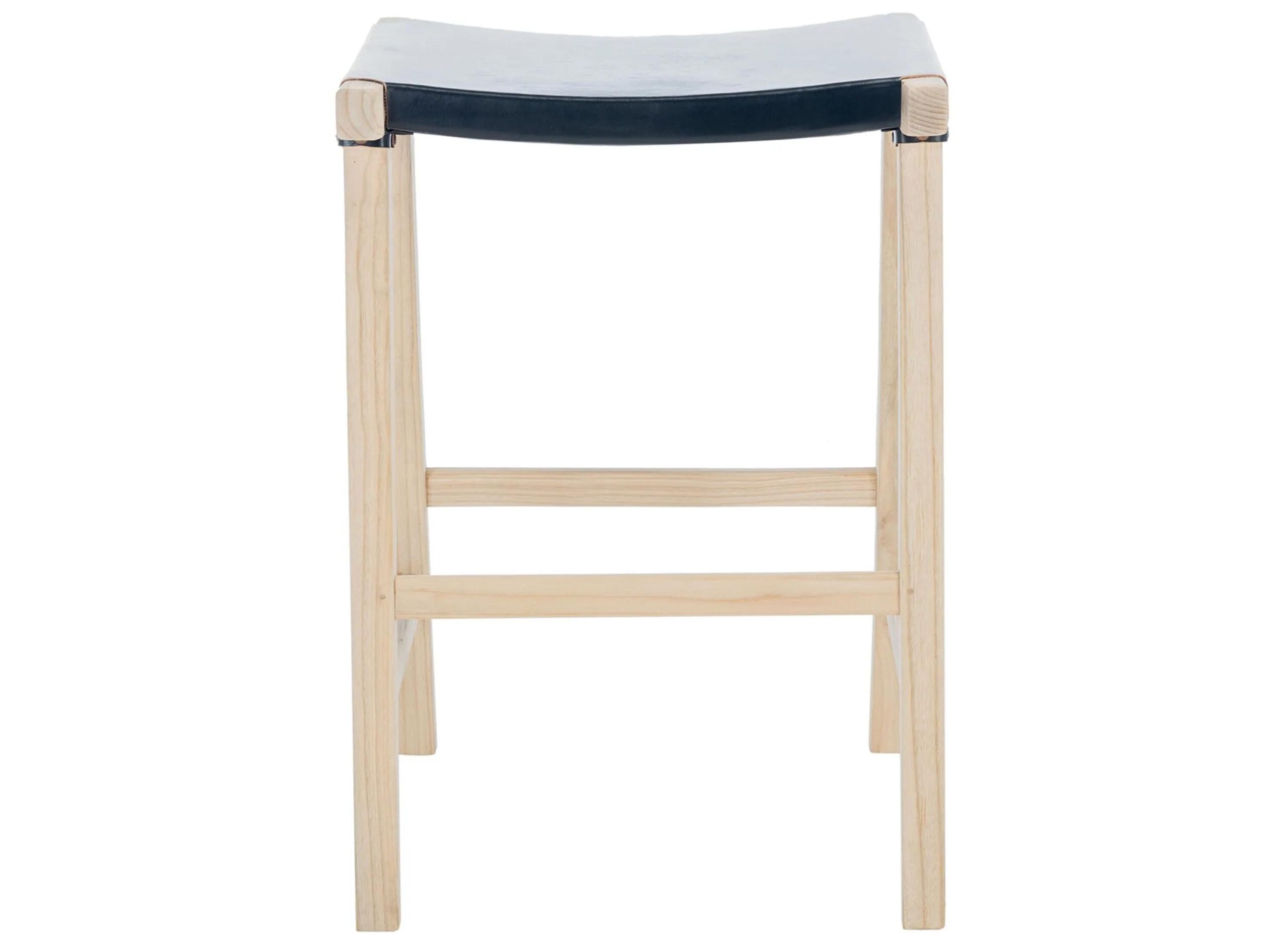 A beautiful blend of designer aesthetics, this Hugo Rectangle Counter Stool makes for high style seating at the breakfast nook or indoor bar. Hugo’s polished sawhorse inspired wood frame provides a chic juxtaposition to its black leather seat, bringing unique visual intrigue to any decor.