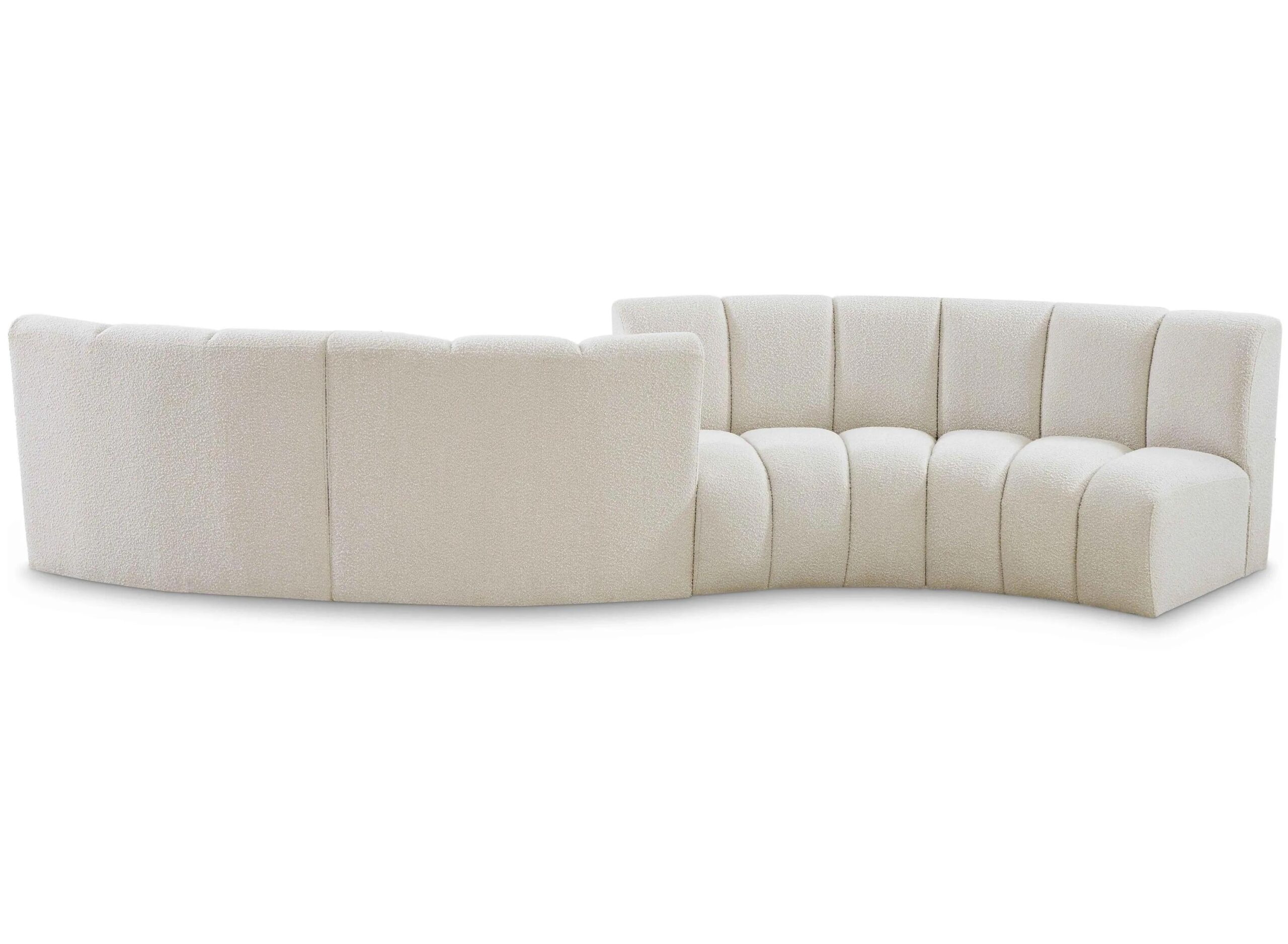The Infinity 4-pc. Modular Sectional is the best possible seating solution for your gang. Rich black boucle fabric feels welcoming and soft to the skin, so you stay seated comfortably for the big game or while watching your favorite programs.