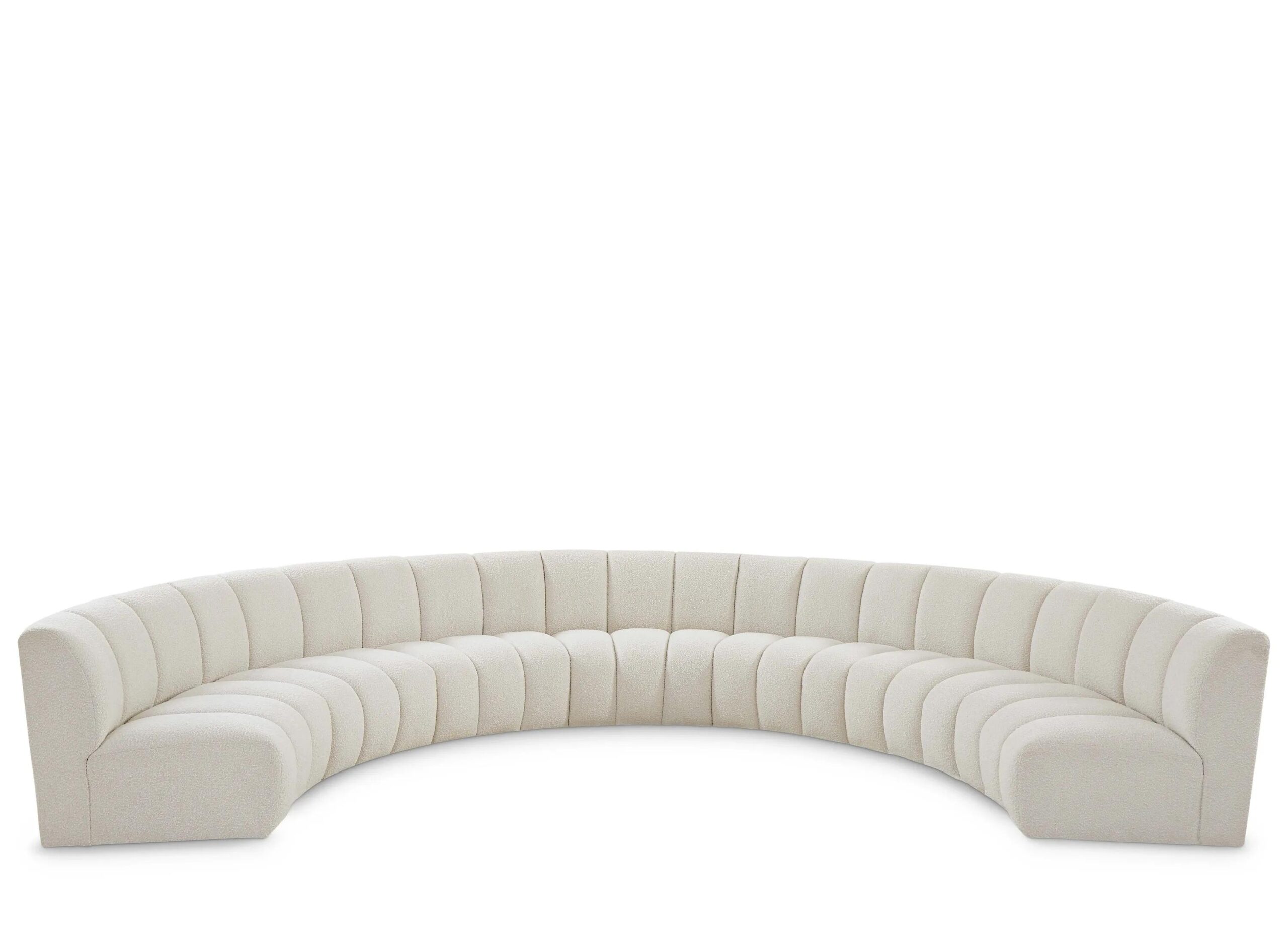 The Infinity 7-pc. Modular Sectional is the best possible seating solution for your gang. Rich black boucle fabric feels welcoming and soft to the skin, so you stay seated comfortably for the big game or while watching your favorite programs.