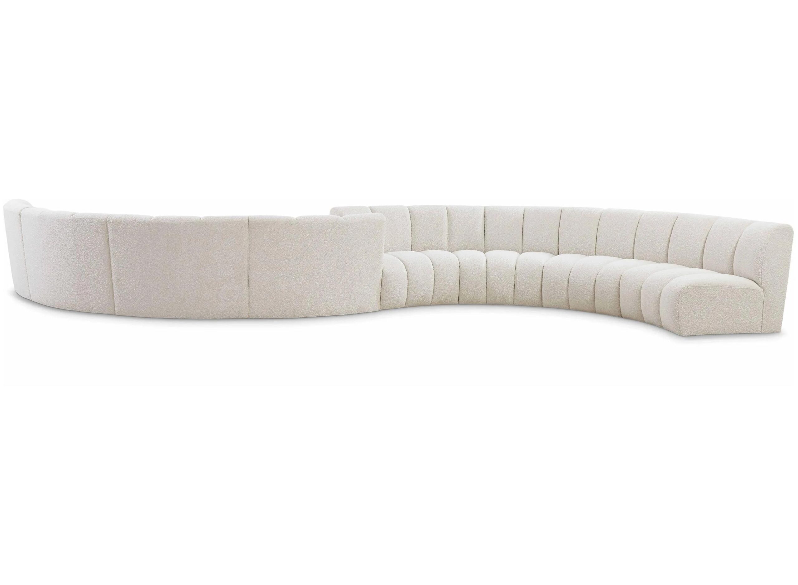 The Infinity 8-pc. Modular Sectional is the best possible seating solution for your gang. Rich black boucle fabric feels welcoming and soft to the skin, so you stay seated comfortably for the big game or while watching your favorite programs.