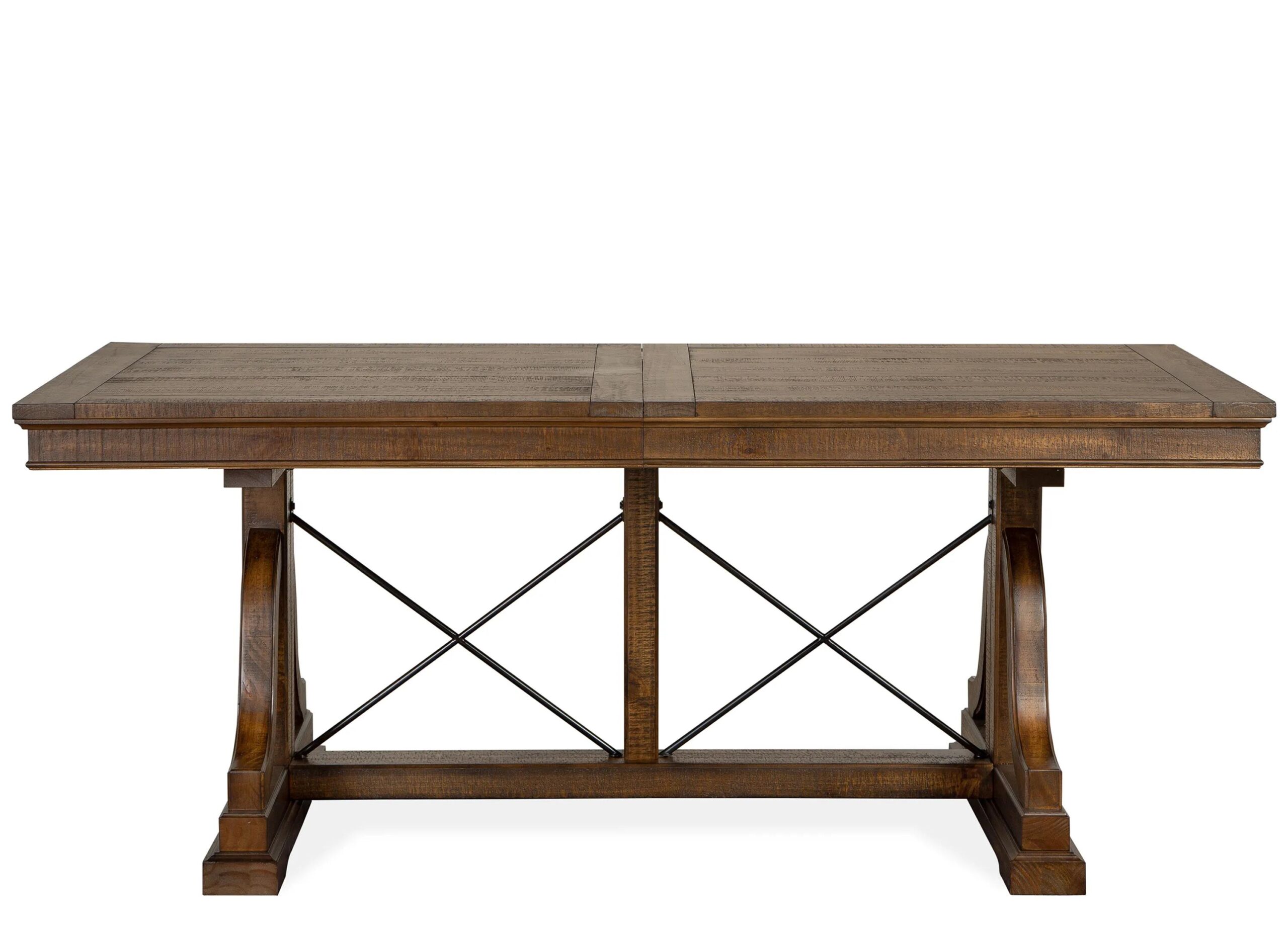 Ivy Ridge Trestle Dining Table is perfect for casual dinners or fine dining and its timeless character ensures every meal is a success. Crafted with impeccable attention to detail and Bay Creek features a warm Toasted Nutmeg finish accented with Aged Bronze hardware.
