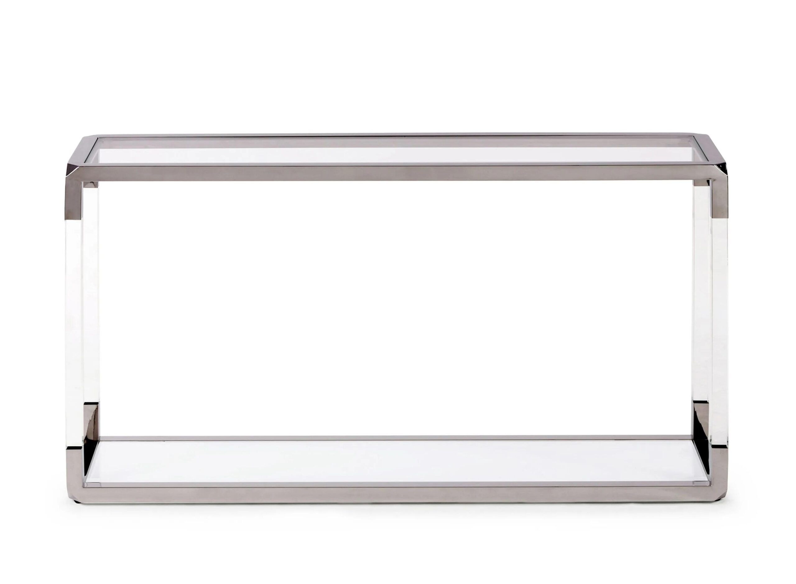 Inspired by the glamour of classically modern design, the Jasper Console Table offers a striking surface for display. Its ultra-clear glass top is framed in polished stainless steel and acrylic for an airy, floating look sure to impress your guests.