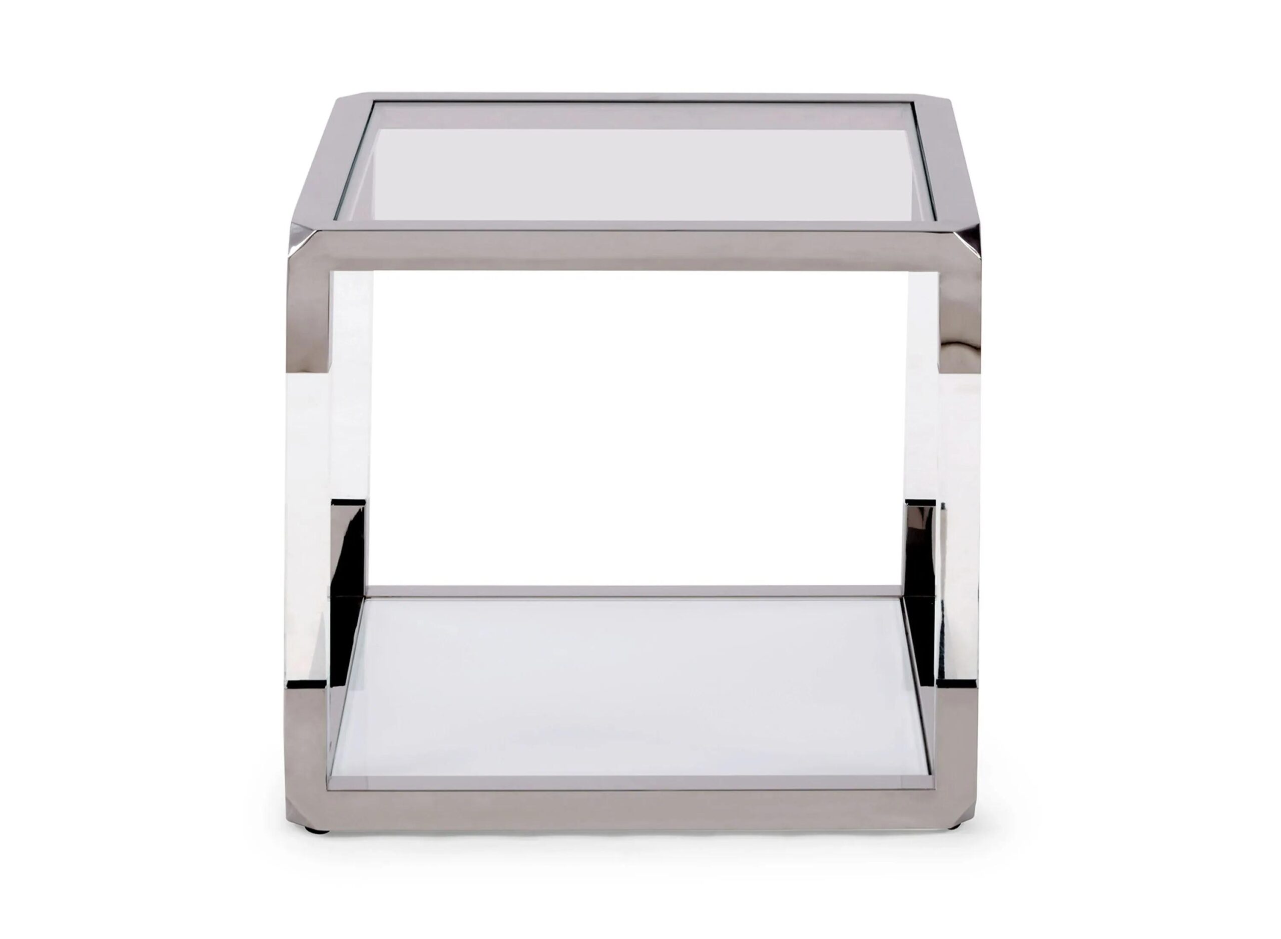 Inspired by the glamour of classically modern design, the Jasper End Table offers a striking surface for display. Its ultra-clear glass top is framed in polished stainless steel and acrylic for an airy, floating look sure to impress your guests.