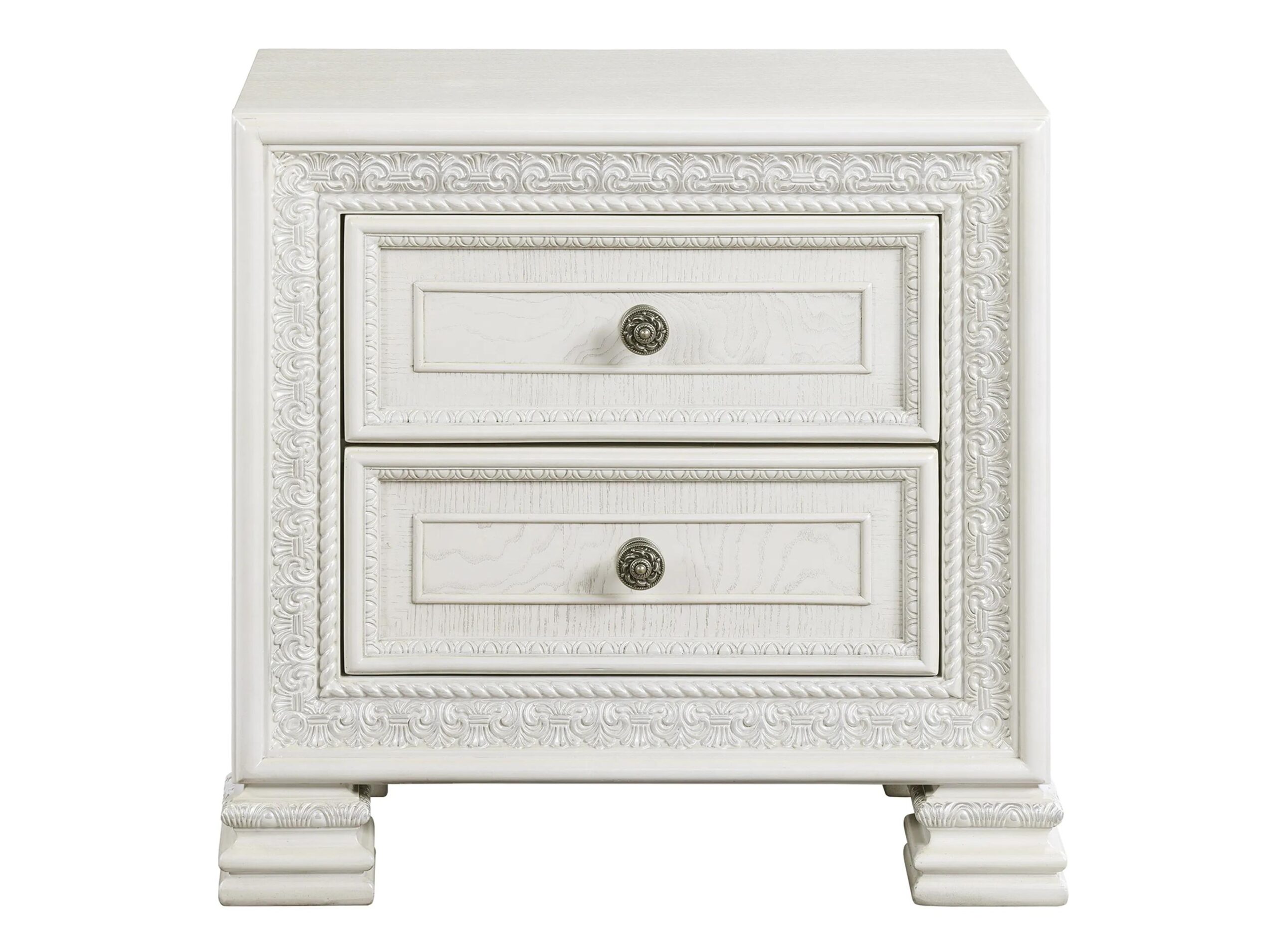 Modern Classicism is defined in the elegant presentation of the Jasper Nightstand. The treasured themes of old-world accenting – egg and dart molding, acanthus detailing, rope molding, detailed knob hardware – front the dresser, mirror, chest, nightstand, and bed, their timeless style
