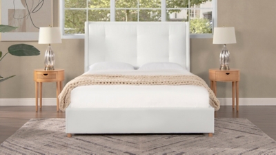 Jennifer Taylor Miramar King Cushion-Back Headboard Platform Bed Frame, Antique