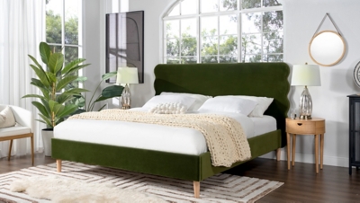 Jennifer Taylor Stockholm Wavy Headboard Platform King Bed, Olive Green