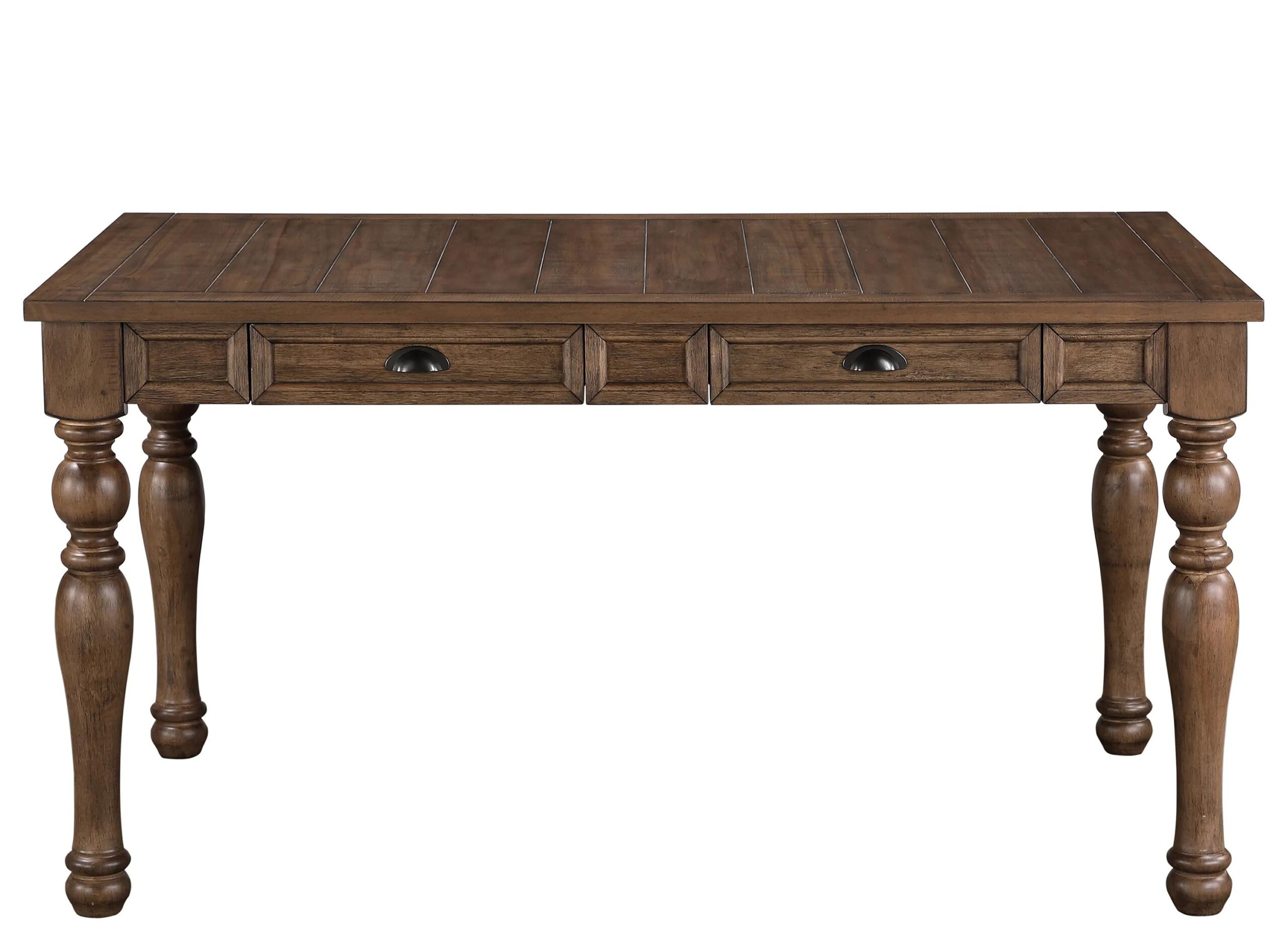 Joanna Dining Table is crafted with high-quality materials, showcases a rustic charm with its lustrous caramel finish. Elegant turned legs and four working felt-lined drawers for dining essentials add to its functionality and style.