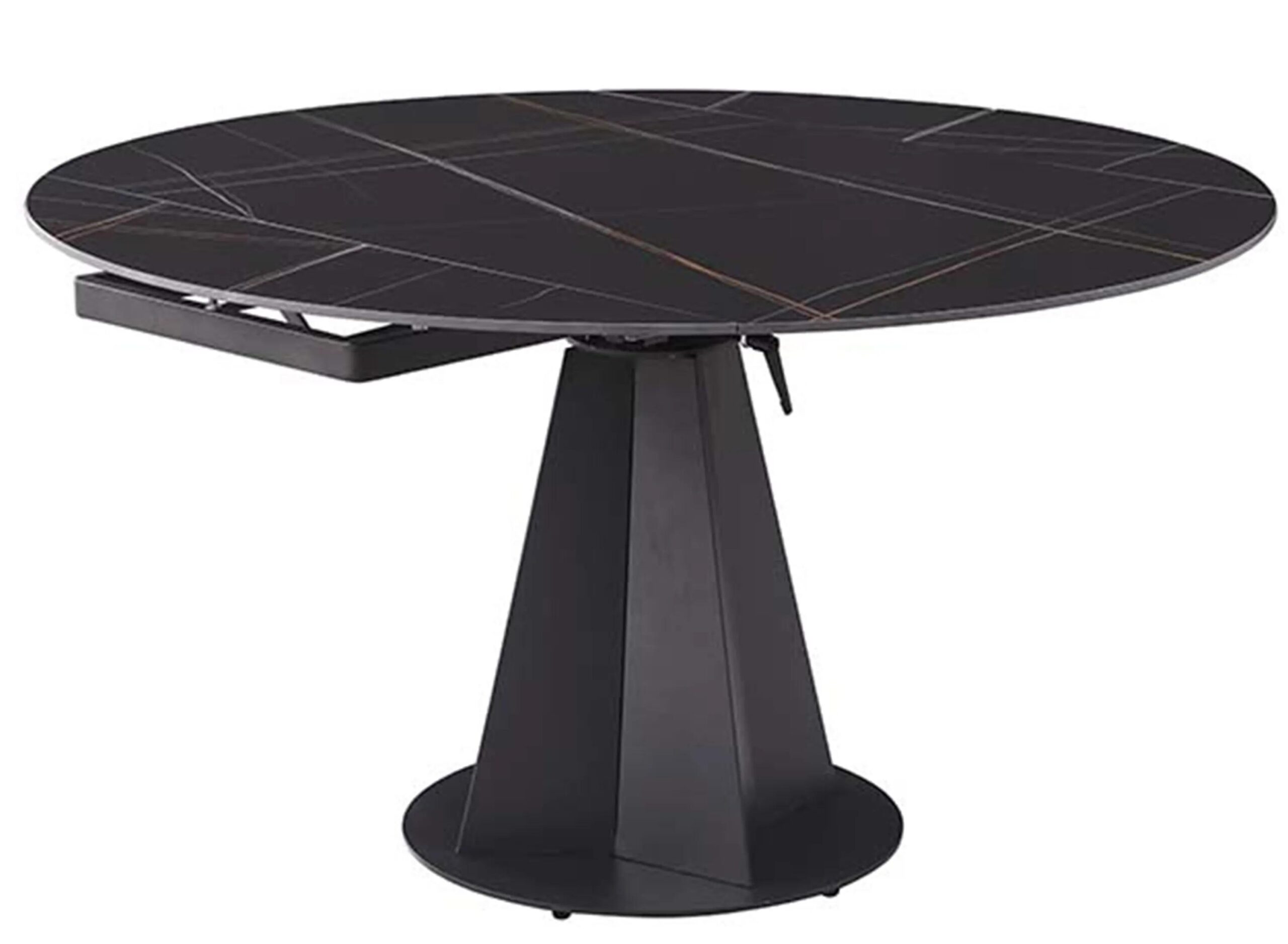 Jocelyn Dining Table bring some dramatic contemporary styling to your dining area with this exciting smooth-motion extendable ceramic top table. A marbleized matte black presents a timeless look for this table that extends from a 33″ by 53″ rectangular shape to a fulsome 53″ rou