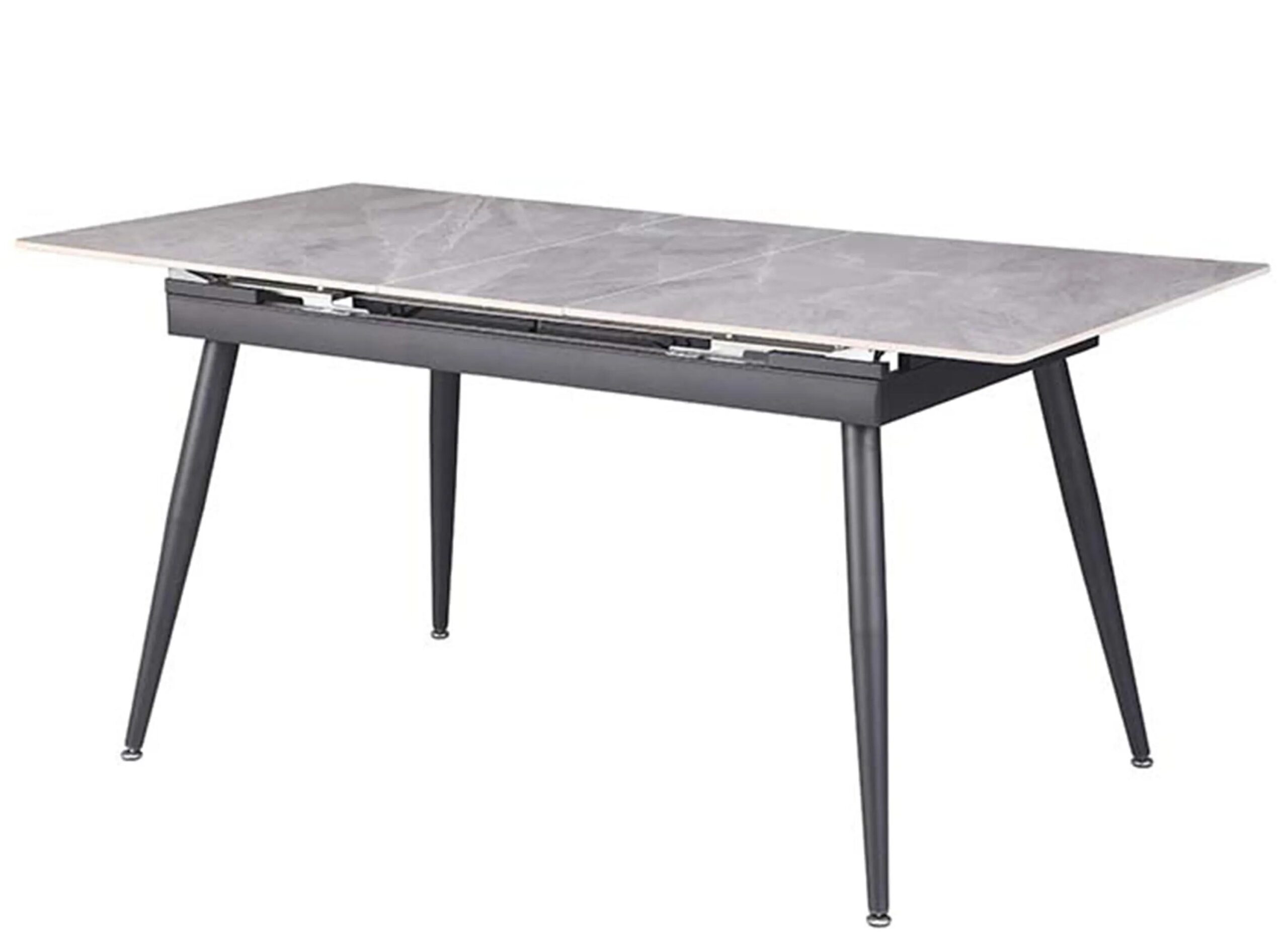 Enjoy convenient and functional contemporary style with this extendable pop-up dining table. A glossy gray marbleized ceramic top features a smooth motion 12″ pop-up extension that takes this table from 32″ by 51″ to a generous 63″ in length, great for getting family and f