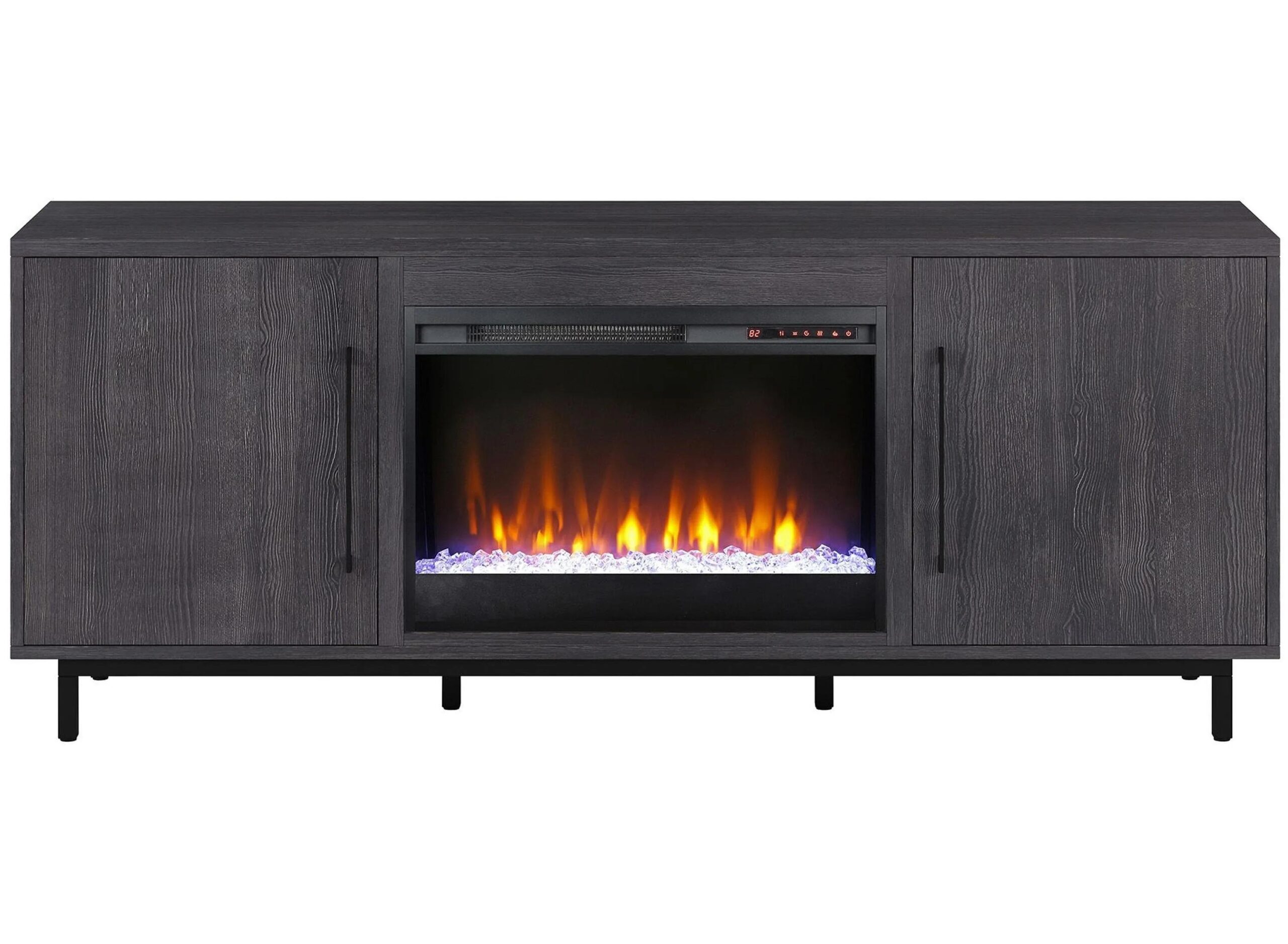 Cultivate effortless mid-century modern style with the clean lines and eye-catching details of the Julian TV Stand featuring an inset electric fireplace, controlled by touch screen buttons or the included remote control.
