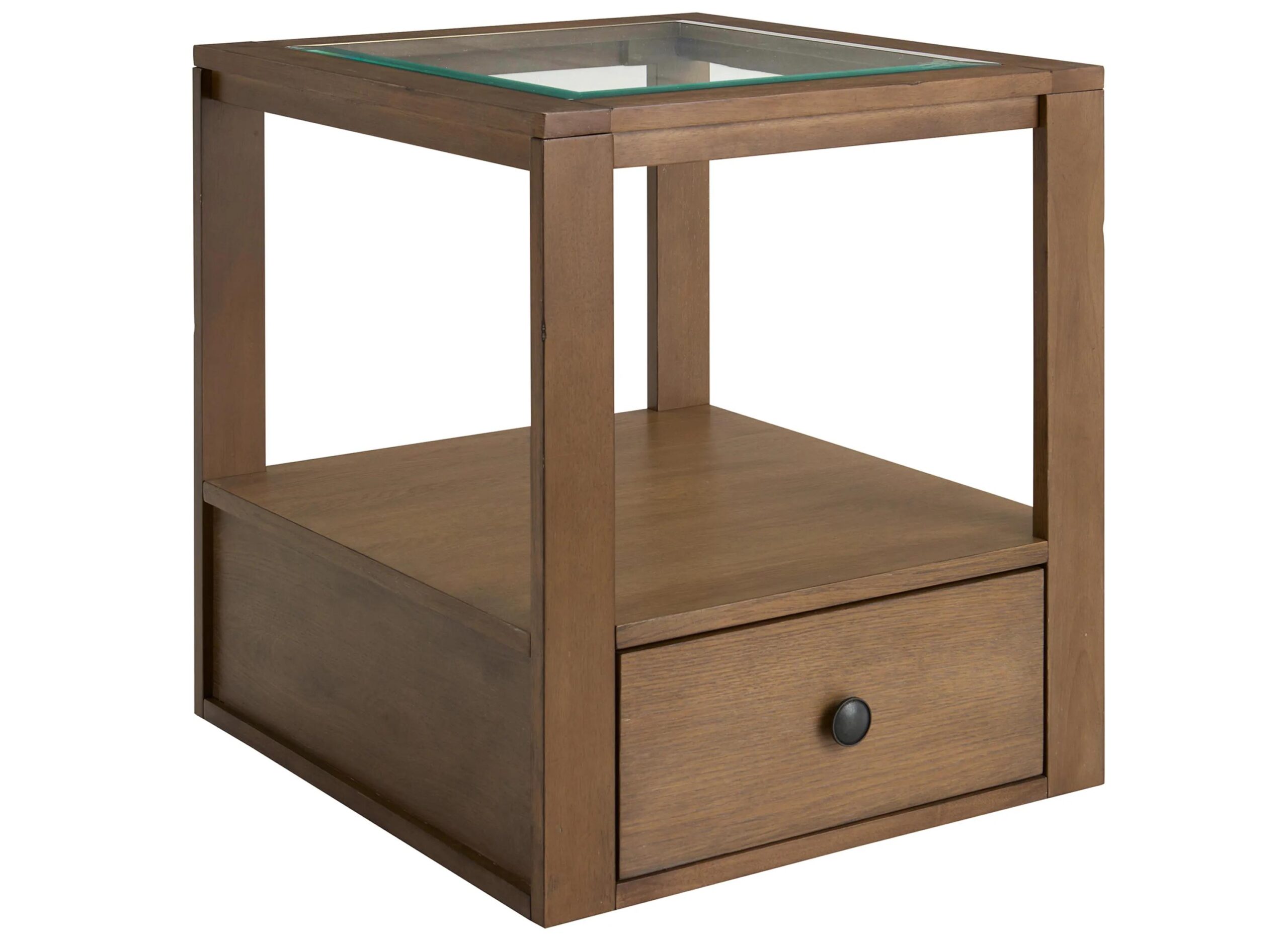 The Kaywood end table is not only functional, but also sure to turn heads with its sculptural silhouette, striking mix of materials, and beautifully balanced proportions. Framed in warm blonde wood over cathedral oak veneers and paired with crisp glass tops, it feels airy yet architectural.