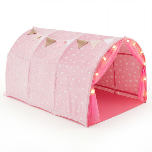 ● Numerous glowing in the dark stars bring kids to a magical world● Equipped with star light string and flag banner for a charming appearance● Double net curtains can be opened and secured with convenient fixing ties● Soft & breathable flannel fabric offers a gentle touch● Flexible