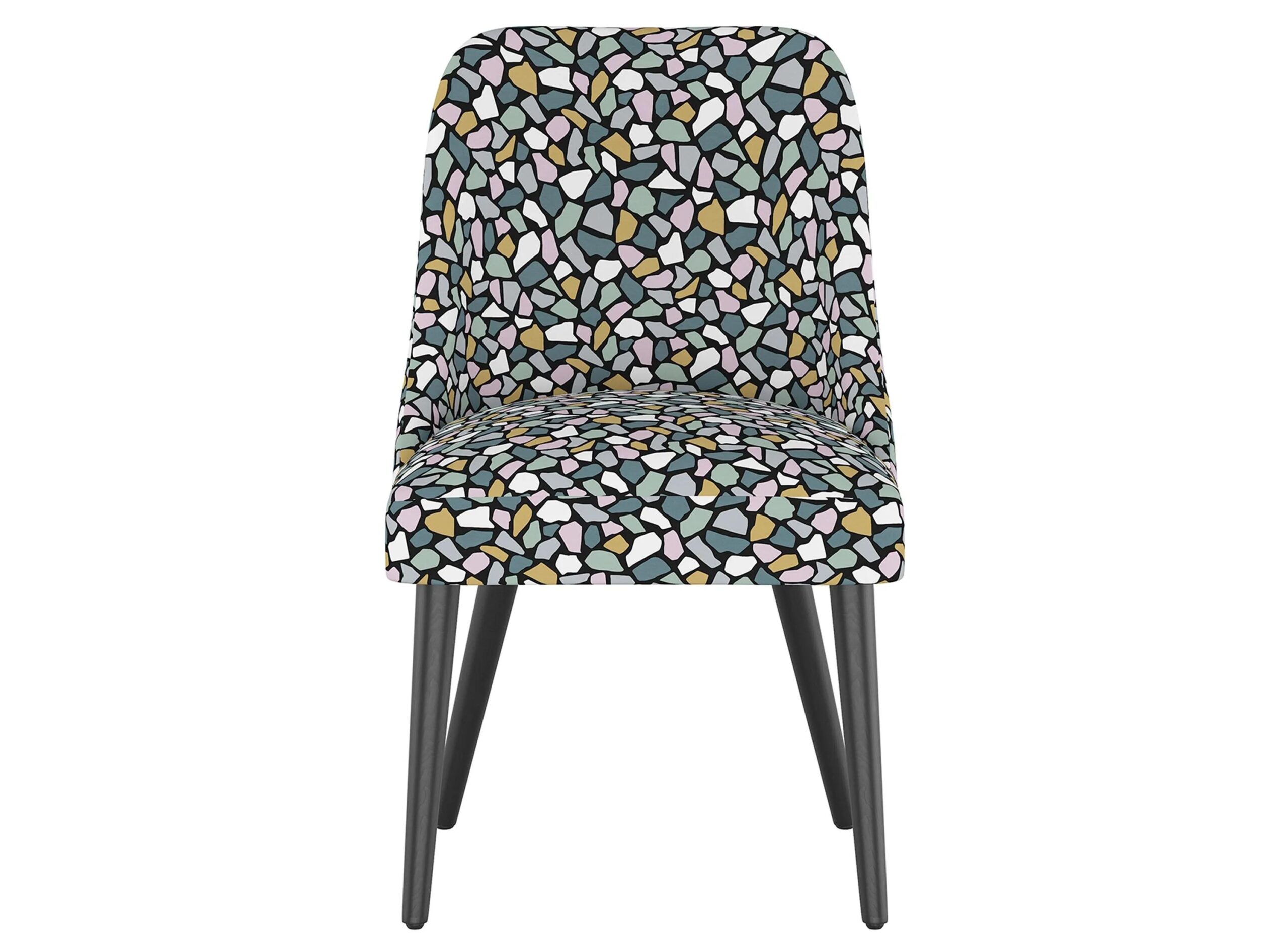 There’s a nearly endless appeal to this rounded Mid-Century Modern Kintra dining chair design. The hand upholstered Animal Print fabric and artfully tapered wooden legs are tasteful and subtle, and the piece is manufactured in Illinois.