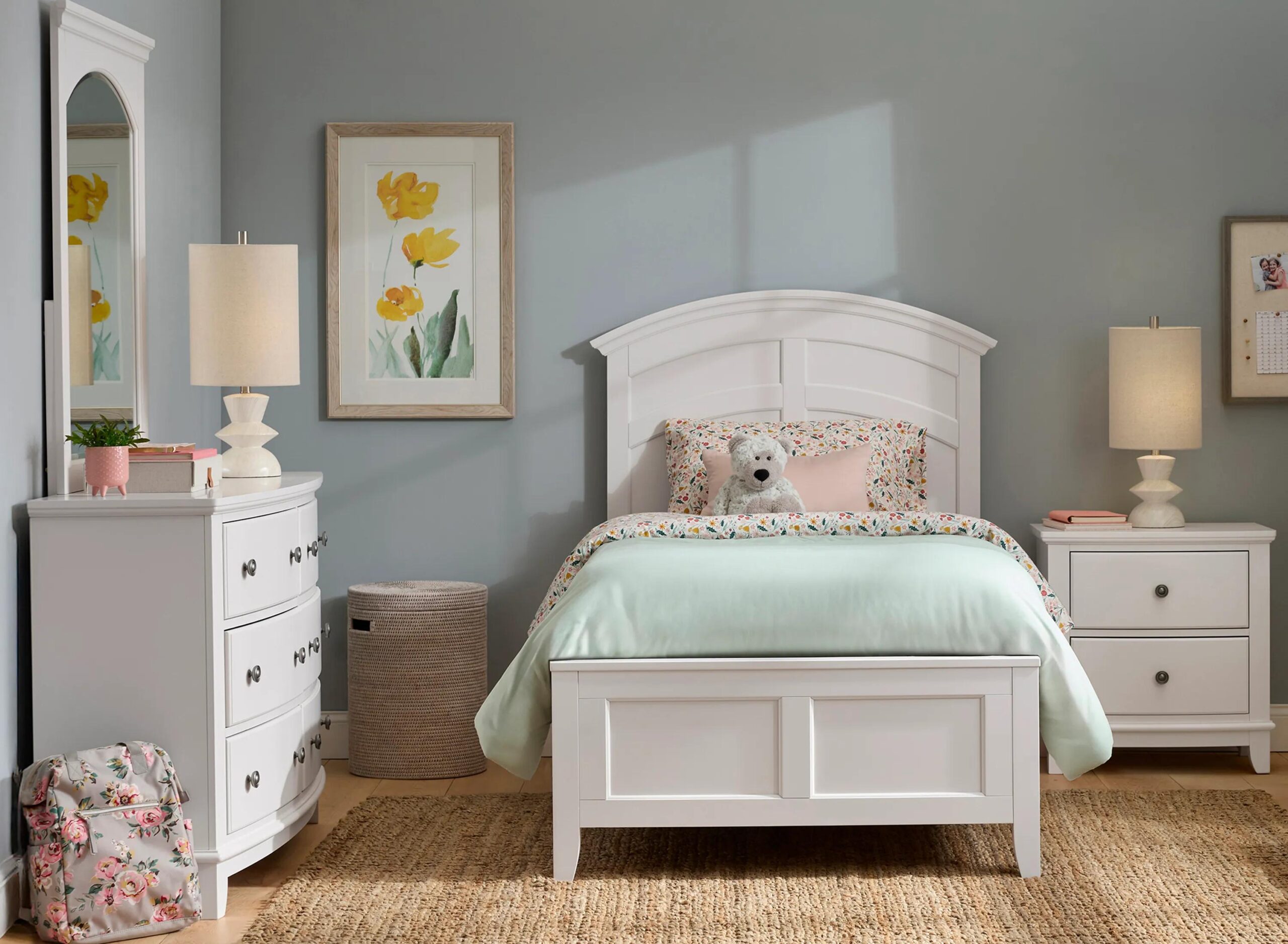 This Kylie 4-pc. full platform bedroom set is the kind of cool and classy furniture your child will love for years! Besides being sleek and chic with a soft cream finish, it provides plenty of space for clothes.