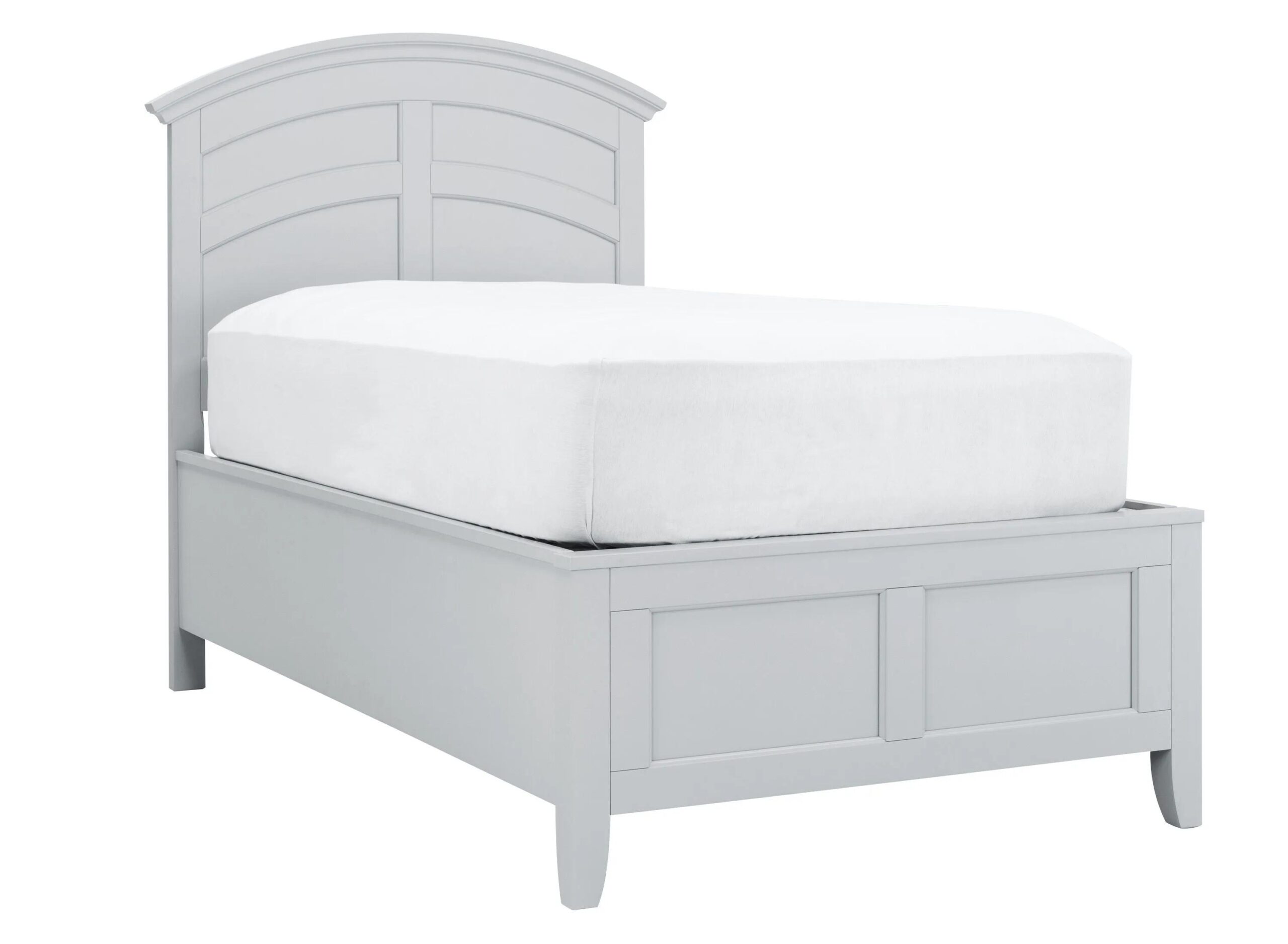 This Kylie full platform bed is the kind of cool and classy furniture your child will love for years! Besides being sleek and chic with a soft cream finish, the bed features a gently arched headboard that adds a classic touch to the simple, streamlined frame.