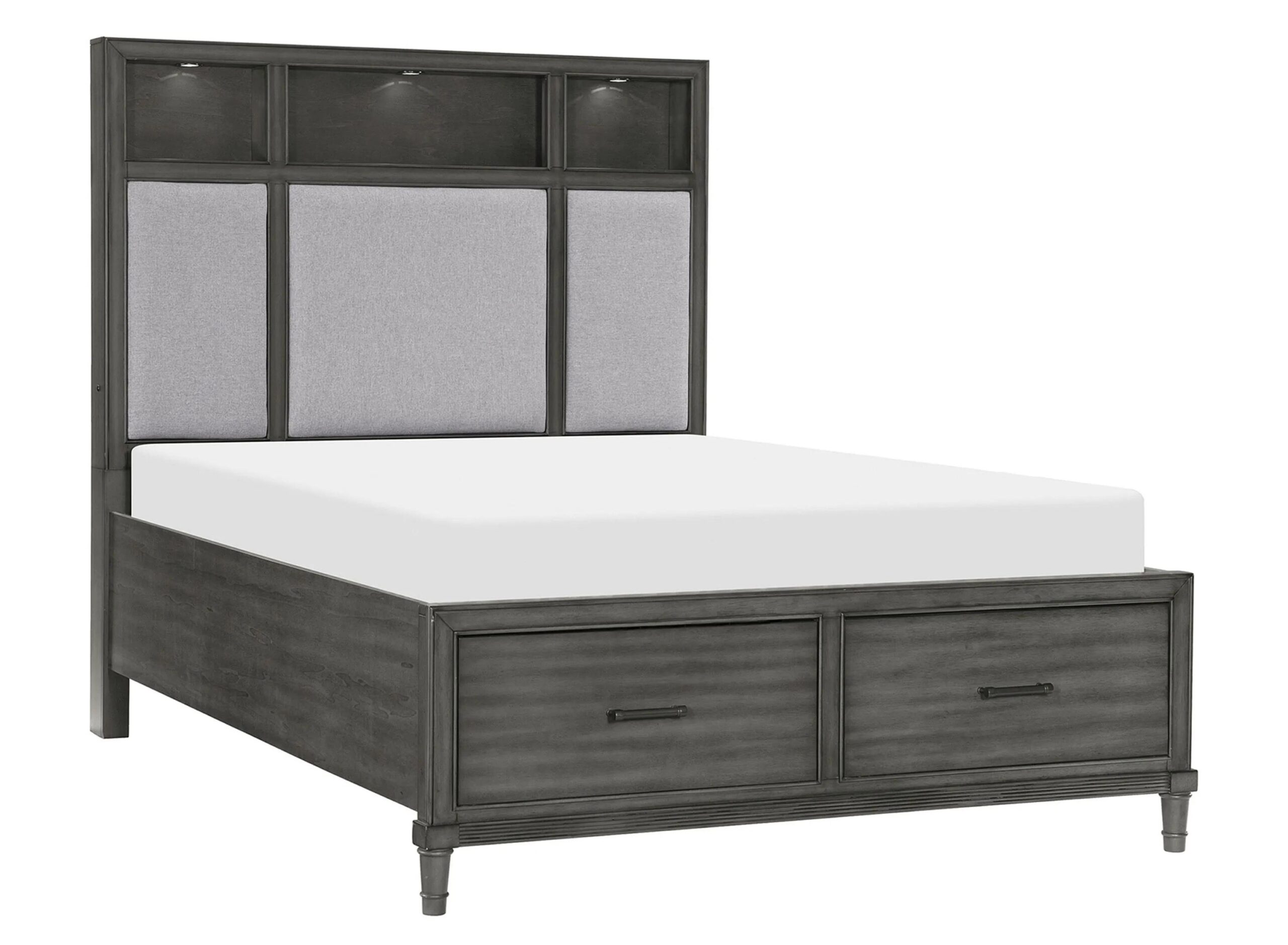 Modern convenience is paired with transitional style to create the versatile look of the Lana Bed. The multi-functional design of the bed allows for convenient storage within the footboard drawers, charging capability by way of the mounted USB ports, as well as display and illumination within the