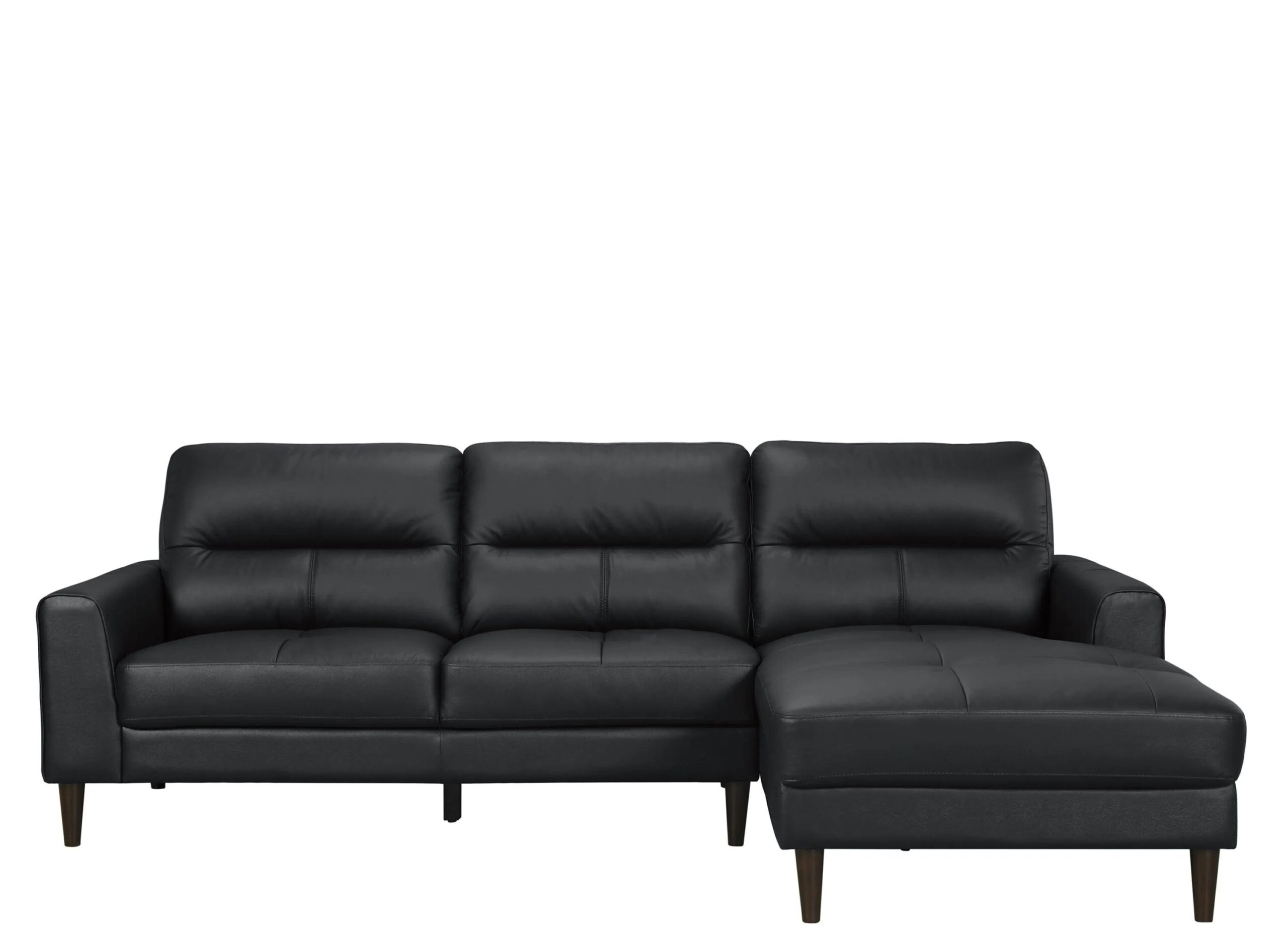 Modern comfort is paired with retro lines to create the design of the Landrum Sectional 2-pc. The sofa-chaise configuration creates a relaxed seated space within your stylish living room. Covering the sofa-chaise is 100% top grain leather where the body touches, while all other areas feature faux
