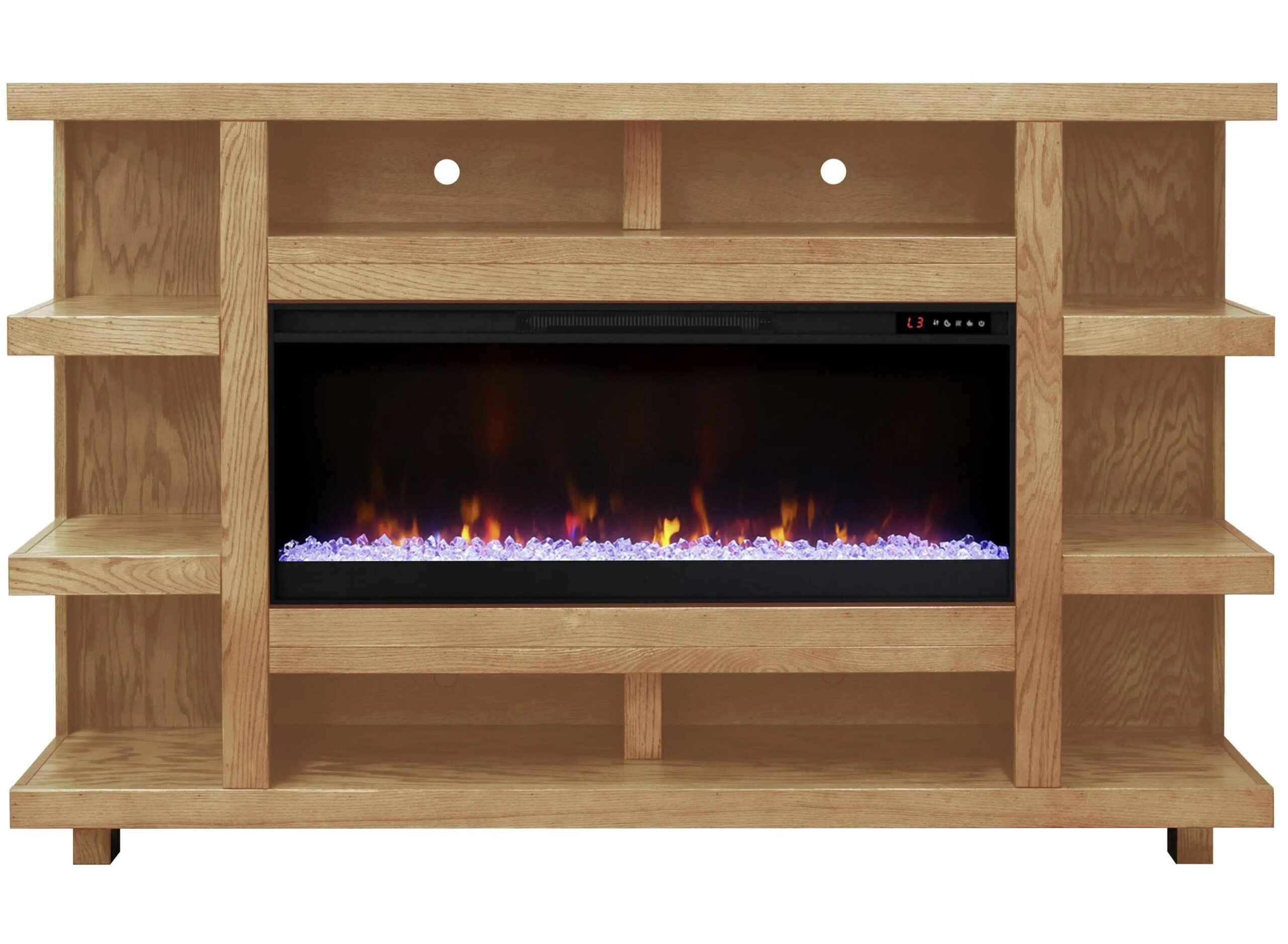 Introducing the Laurel Canyon Fireplace Mantel – a refined piece that blends timeless craftsmanship with a modern aesthetic. Handmade in the U.S., this electric fireplace is crafted from durable oak, showcasing the natural beauty of the wood.