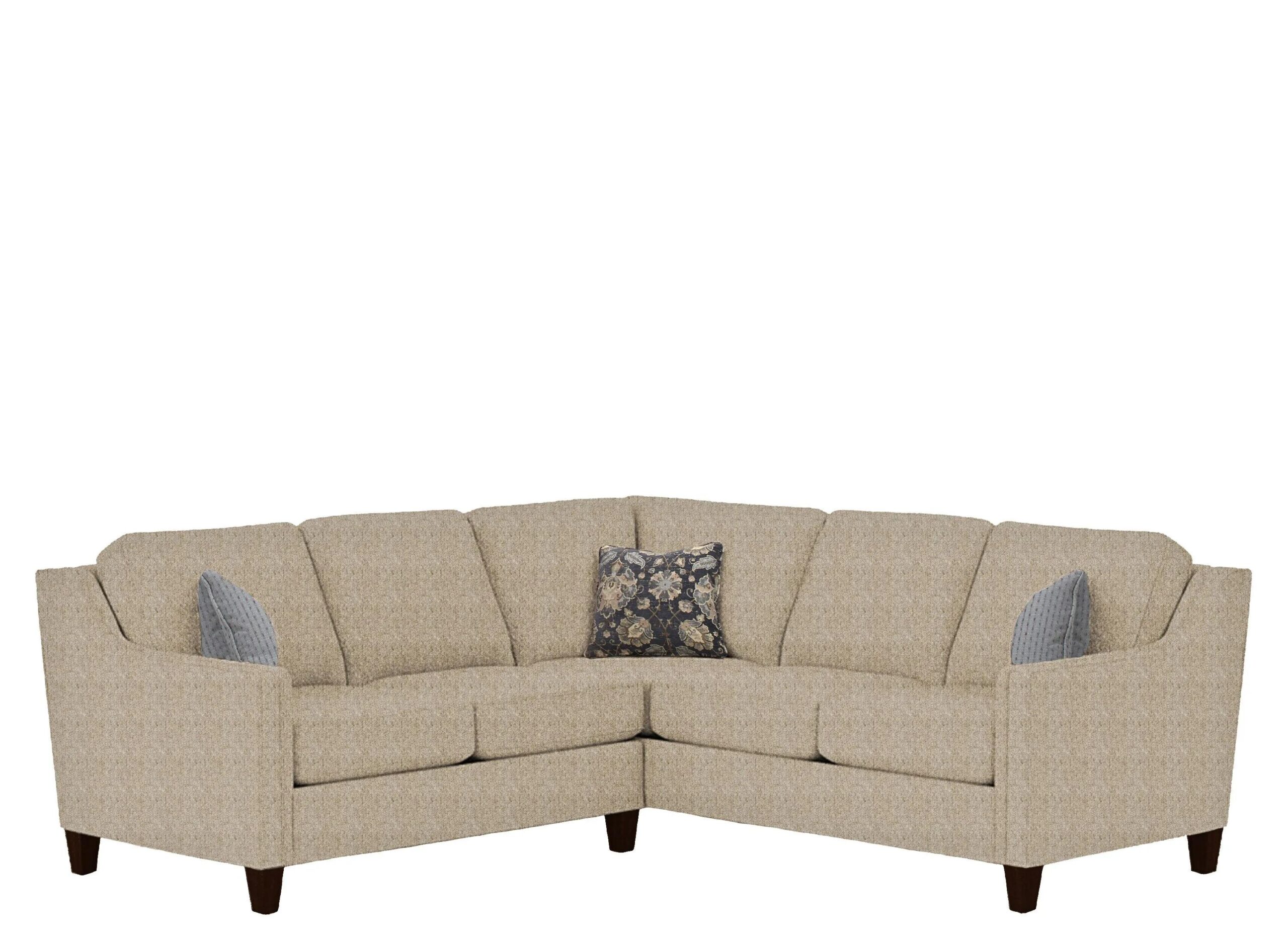 The Lawrence 2-pc. sections simple structure is brought to life with its chic, sloped, tapered track arm with added padding. Providing an attractive profile, The Lawrence sectional also features box seat and back cushions and tapered wooden legs for an elegant look and unmatched style.