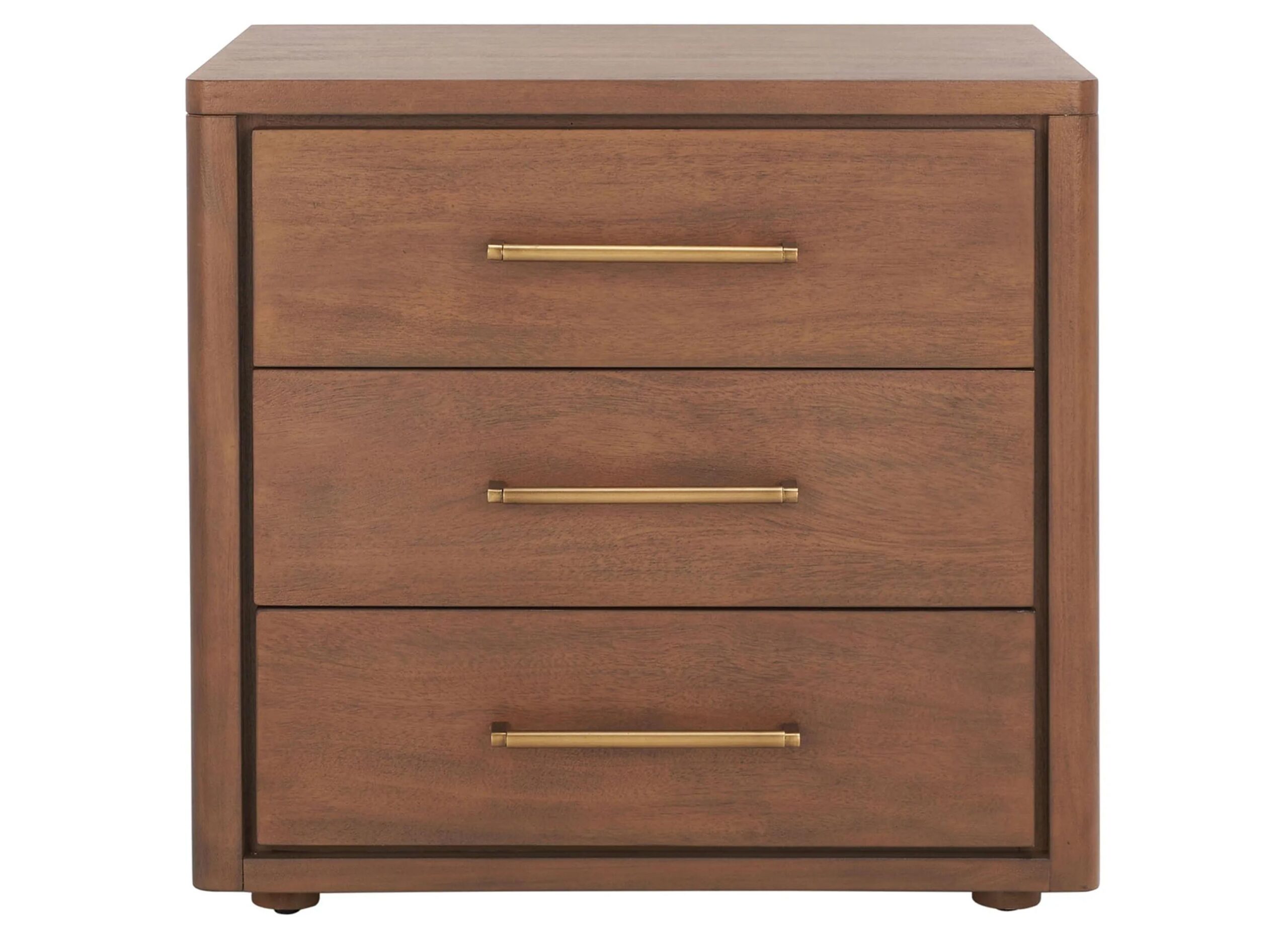 This outstanding Lawrence Nightstand is at once elegant and discrete, making it ideal for today’s classic-contemporary bedrooms. Lawrence’s three drawers in warm brown mahogany provide ample bedside storage, and antiqued brass bar pulls add a couturier touch.