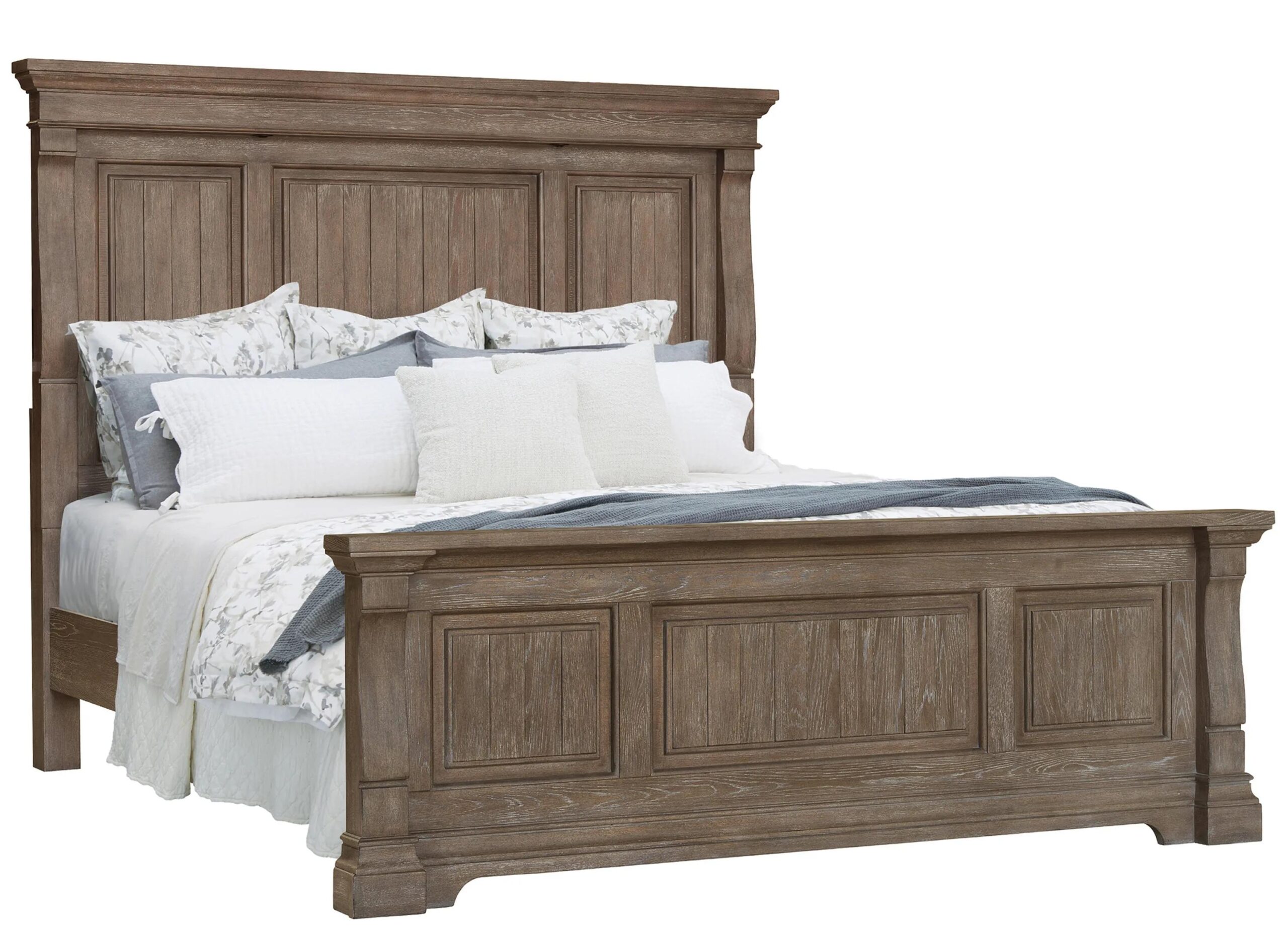 Our Lawson’s Creek Panel Bed combines rustic charm with contemporary elegance, making it a stunning centerpiece for any bedroom. The frame features a mantle-style design with simple paneling in a weathered oak finish, reminiscent of the traditional farmhouse aesthetic.