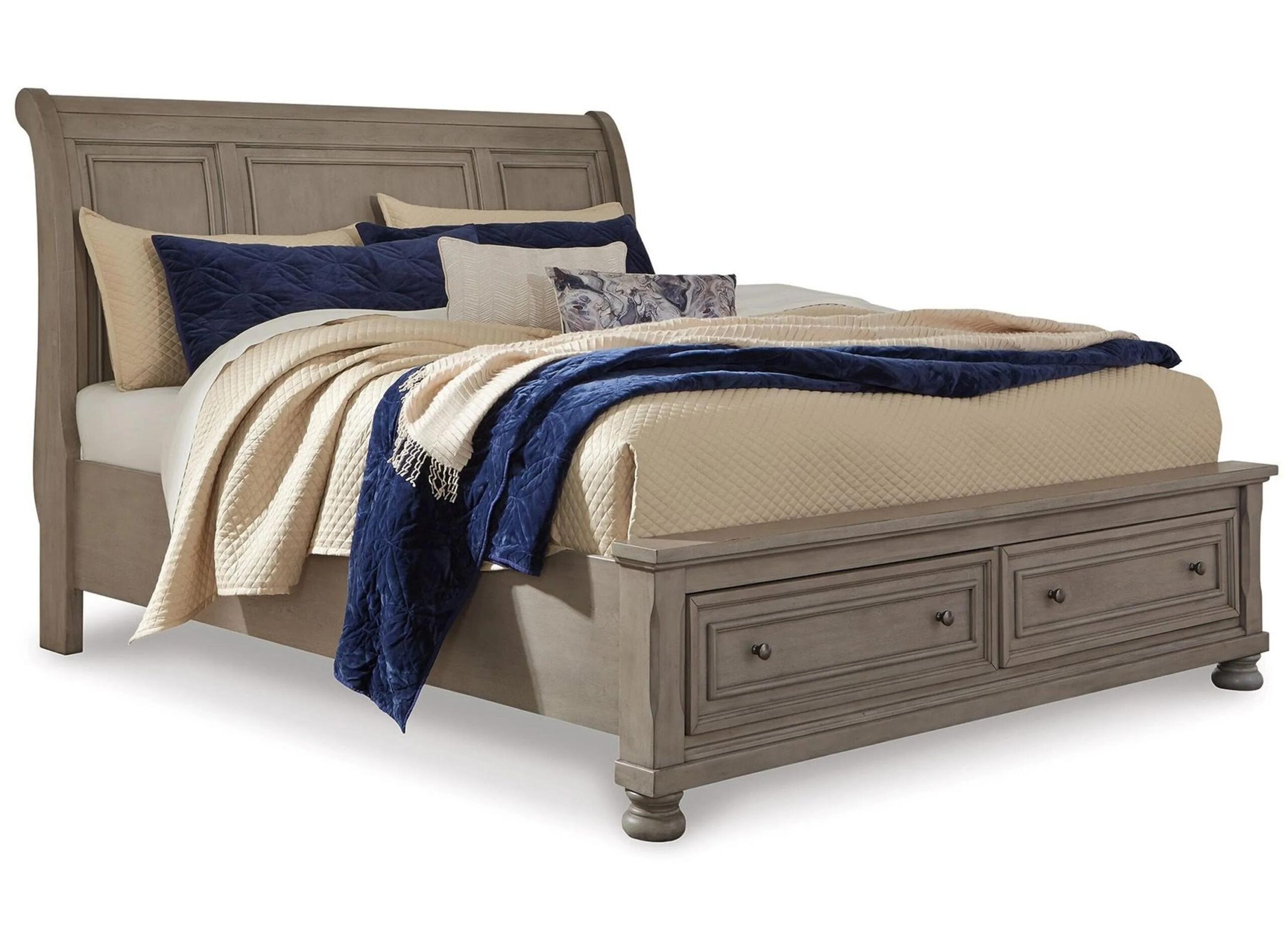 Satisfying your taste for tradition, the Lettner California King Sleigh Bed with storage sports serene sophistication. Forever classic design detailsinlaid panels, silvertone patina hardware and bun feetare so easy to love.