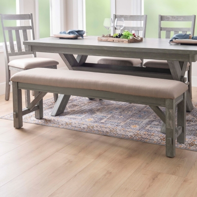 Linon 60″ Benton Dining Bench, Weathered Gray