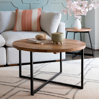 Add a touch of industrial rustic charm to your living space with our nesting coffee table. Crafted with a sturdy, powder-coated black iron frame and a natural mango wood top, this table combines durability with style.