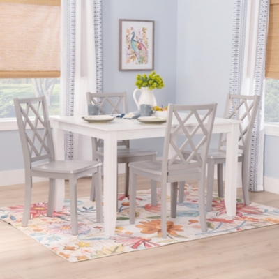 This 5-piece rectangle dining set has a simple casual design that you can match to any style of decor, whether it be coastal, modern, or transitional. The pure white finish acts as a neutral canvas for the 4 light grey, all wood side chairs.