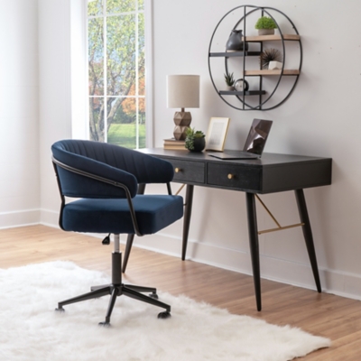 Elevate your workspace with this sophisticated office chair, upholstered in a luxurious navy velvet that adds a rich, modern touch to any setting. The sleek channel-stitched backrest combines style and ergonomic support, ensuring comfort and elegance.
