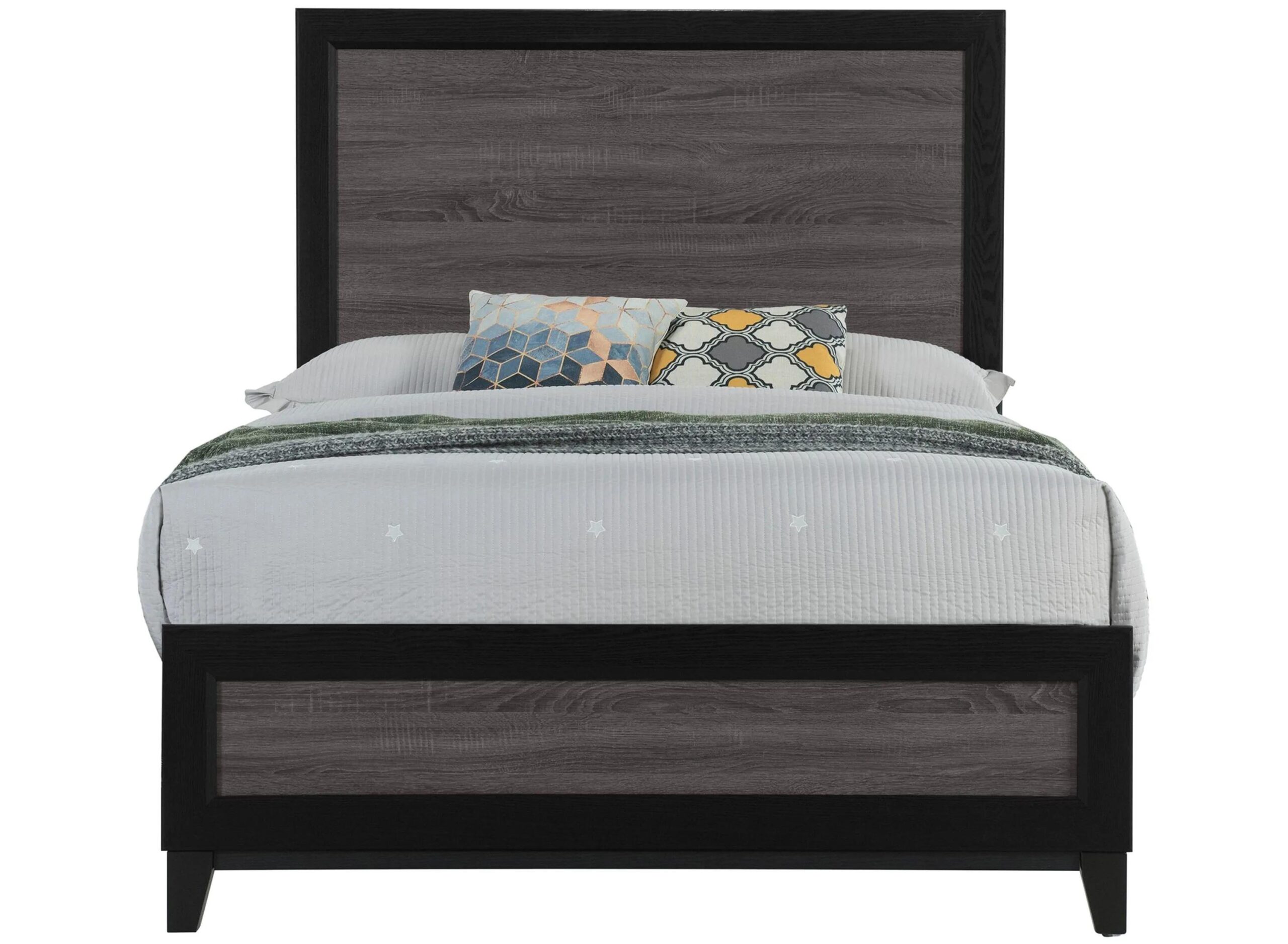 With its urban farmhouse design, the best of farmhouse and urban living combine in this Lisbon Bed to create this appearance. In addition to the two-tone design, the high panel headboard with low profile footboard makes this a simple design to accommodate any decor.