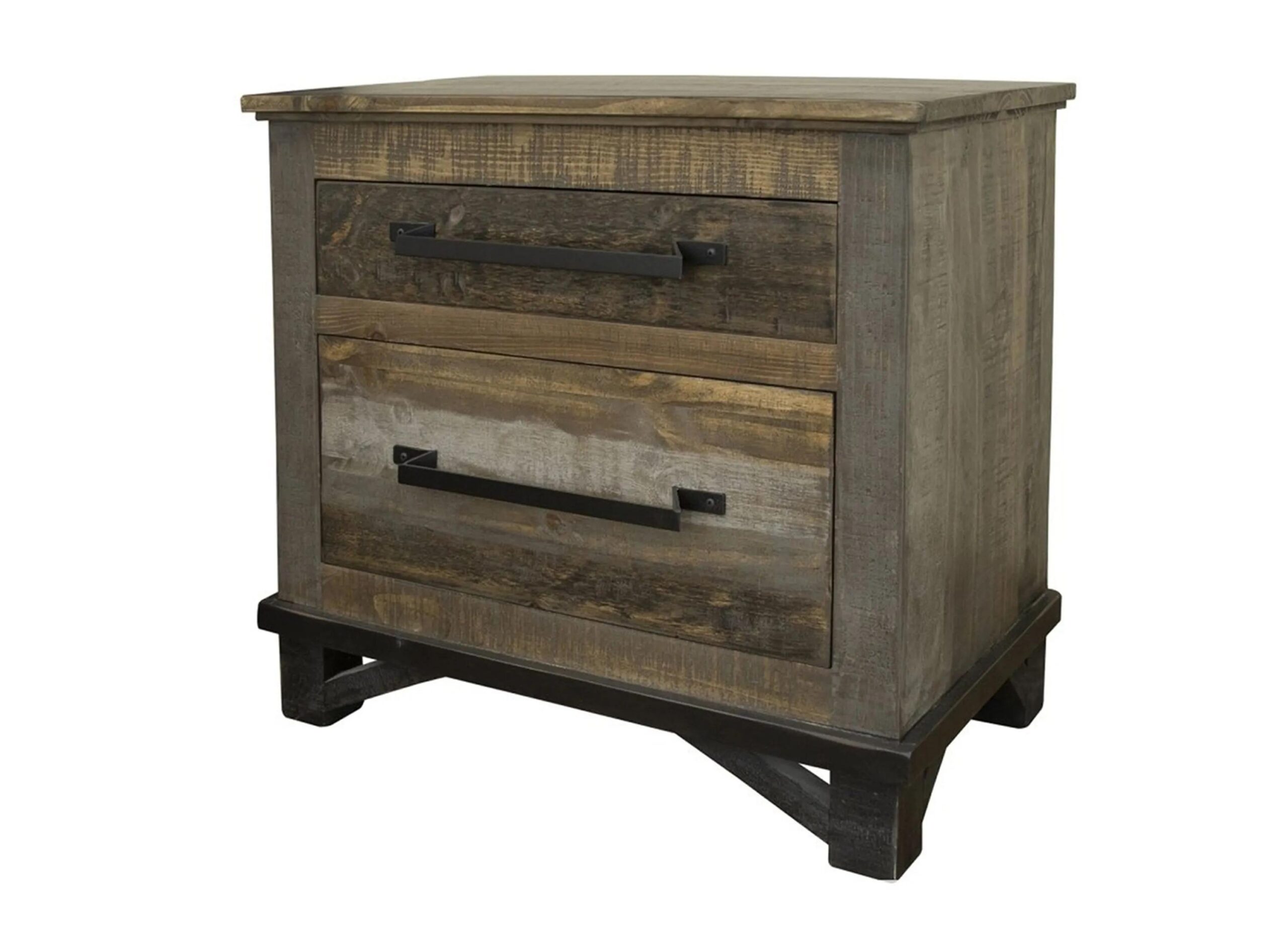 Warm up your bedroom’s style with this rustic Loft brown Nightstand. It features the beauty of solid wood, paneled drawer fronts, and curved metal hardware. Plus, you’ll love its warm finish, as well as all of the storage space it provides.