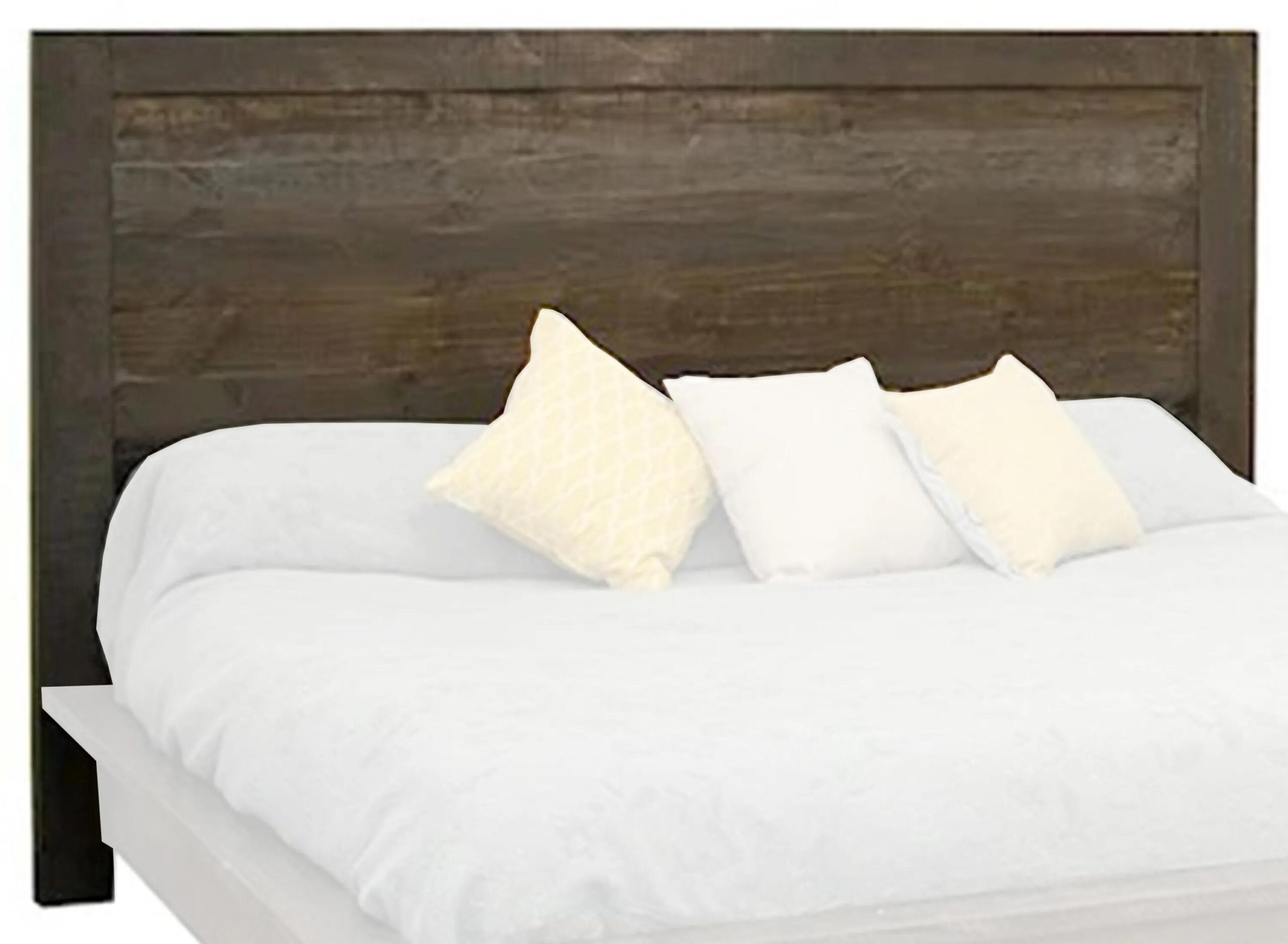 Warm up your bedroom’s style with this rustic Loft Brown King Headboard. It features the beauty of solid wood and curved metal hardware. Plus, you’ll love its warm finish it provides.