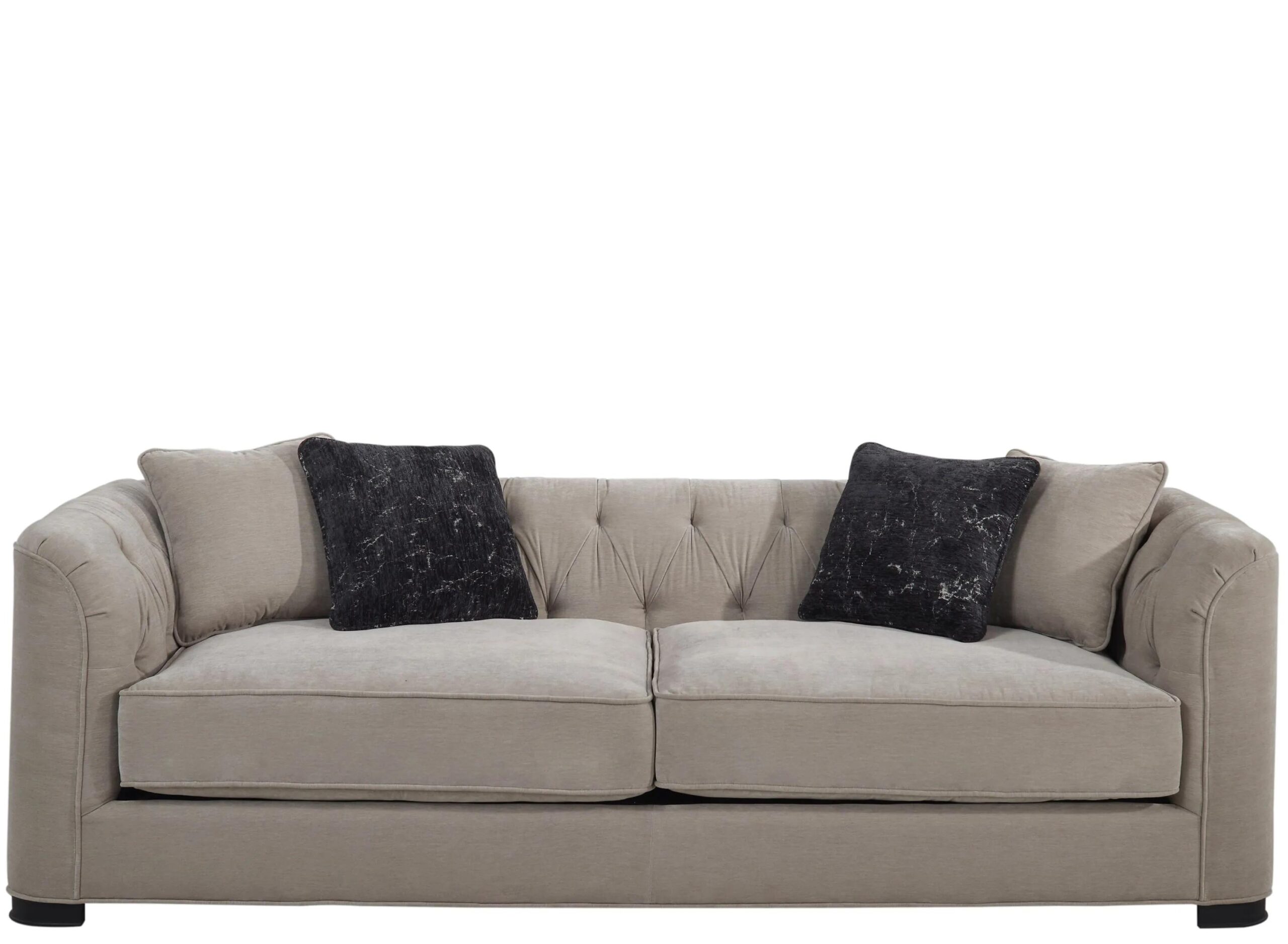 The evolution of classic elegance comes home with the Loft sofa. This conversation starter re-imagines the allure of the iconic Chesterfield with a contemporary profile and sleekly rounded corners. Deep buttonless tufts on chenille fabric in a lovely dove gray bring a stunning bit of glam and dra