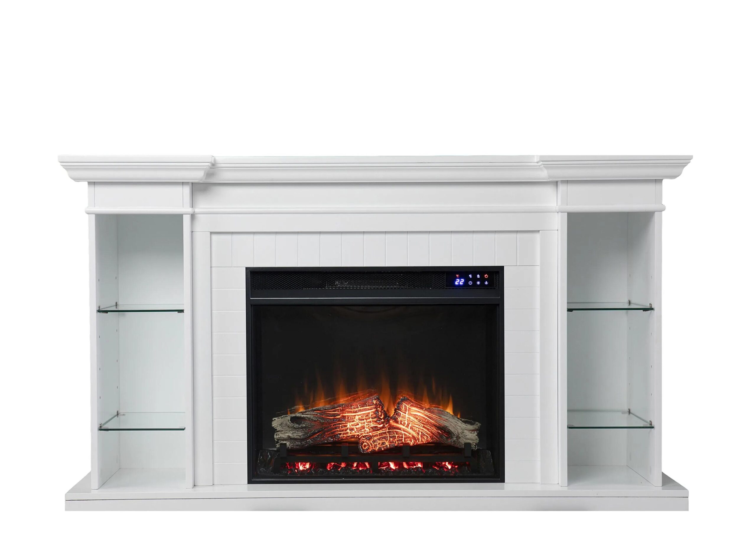 Create a warm, inviting living space with this Longridge Touch Screen Fireplace. Adjustable shelves provide a place for books, movies, and decor, while a spacious mantel displays family photos and floral arrangements.